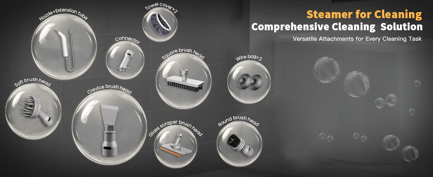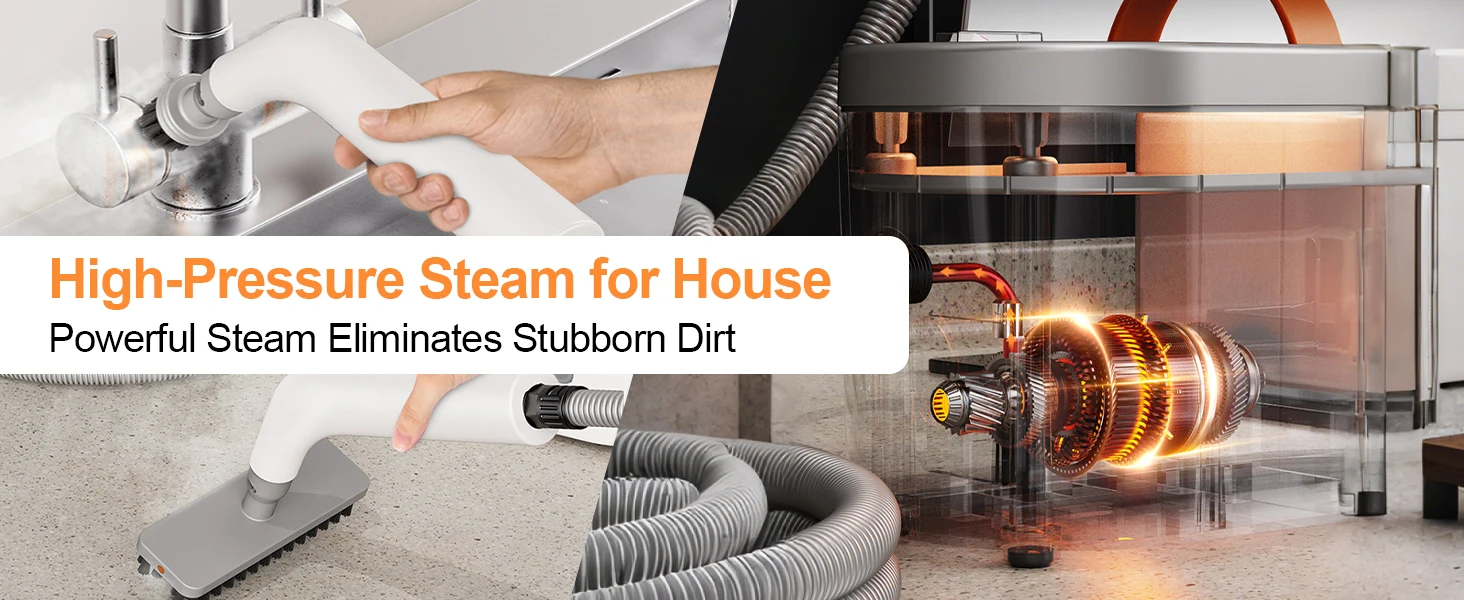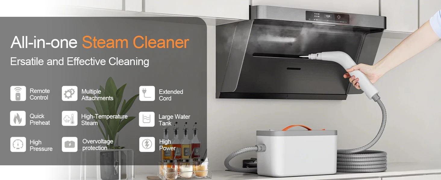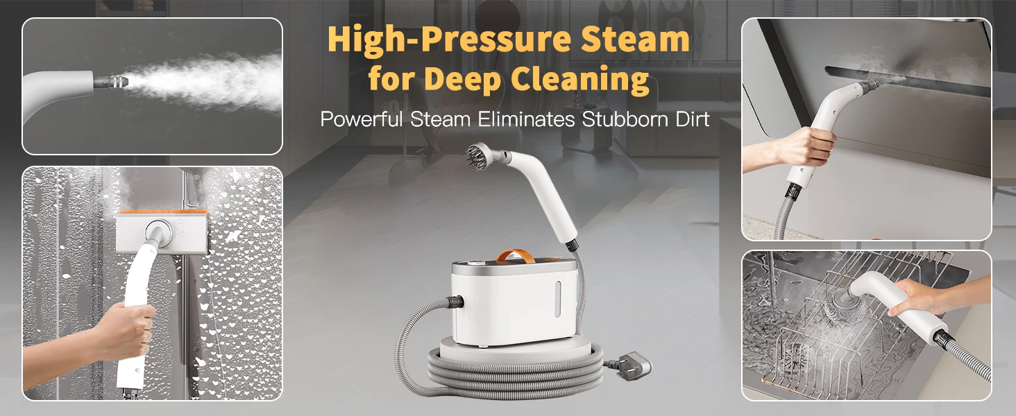 منظف بالبخار محمول باليد، سعة كبيرة 750 مل، تسخين سريع ومنظف بالبخار عالي الضغط للمنزل، يتضمن 11 ملحقًا، متعدد الاستخدامات