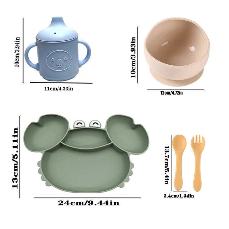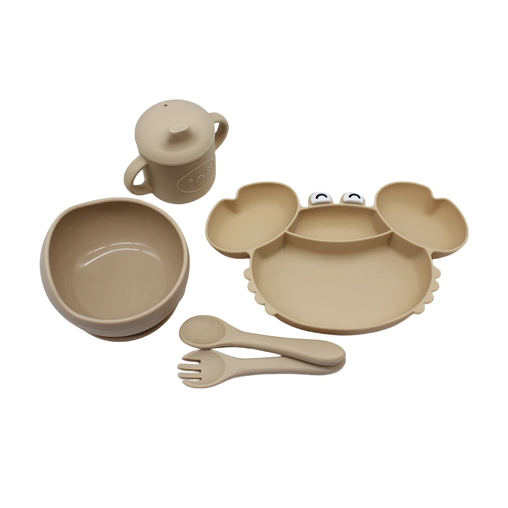 طقم أدوات طعام للأطفال مع طبق مقسم على شكل سرطان البحر، سهل التنظيف وقابل للتعقيم بالغليان، مجموعة أدوات تدريب على الأكل للأطفال