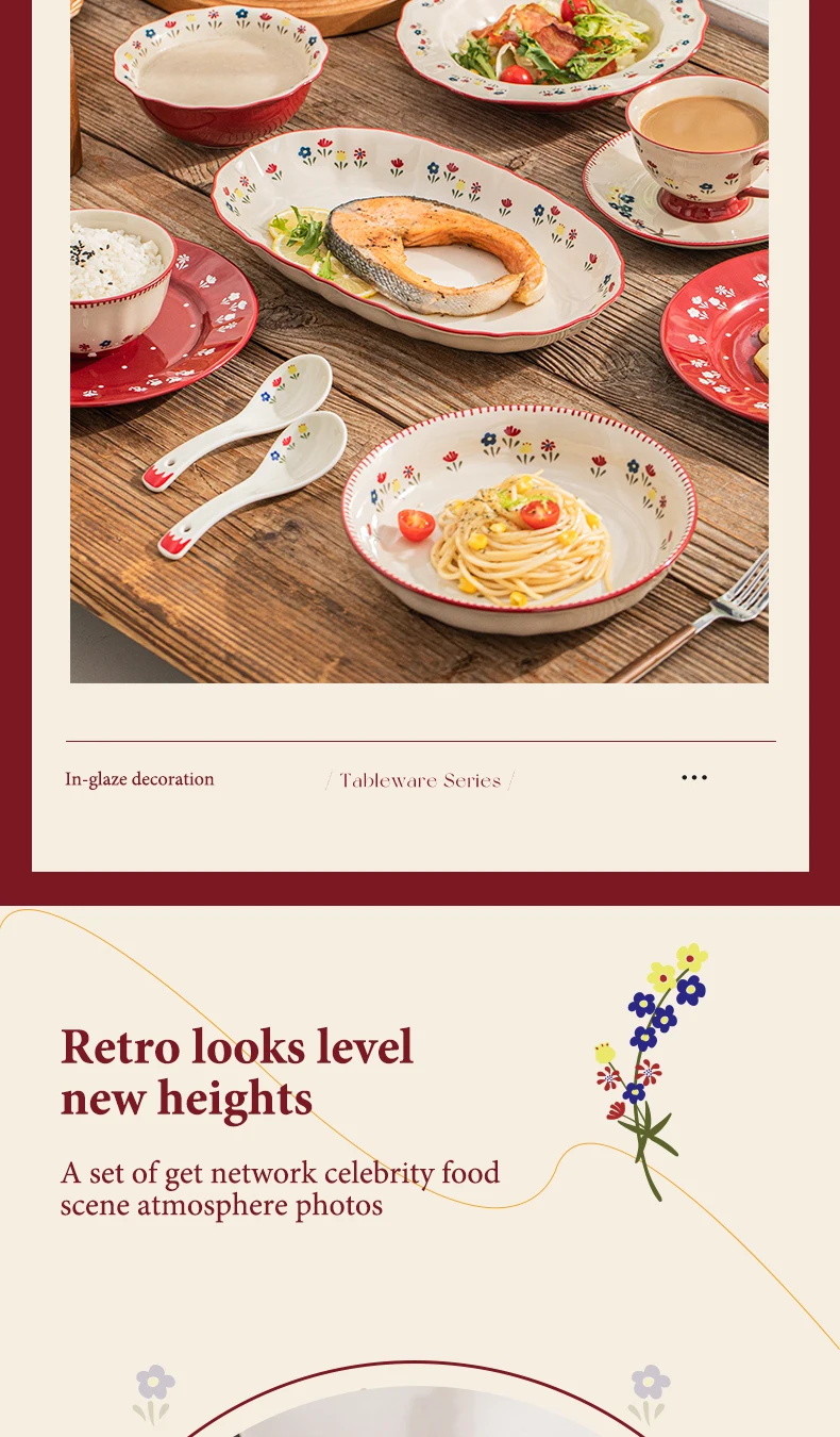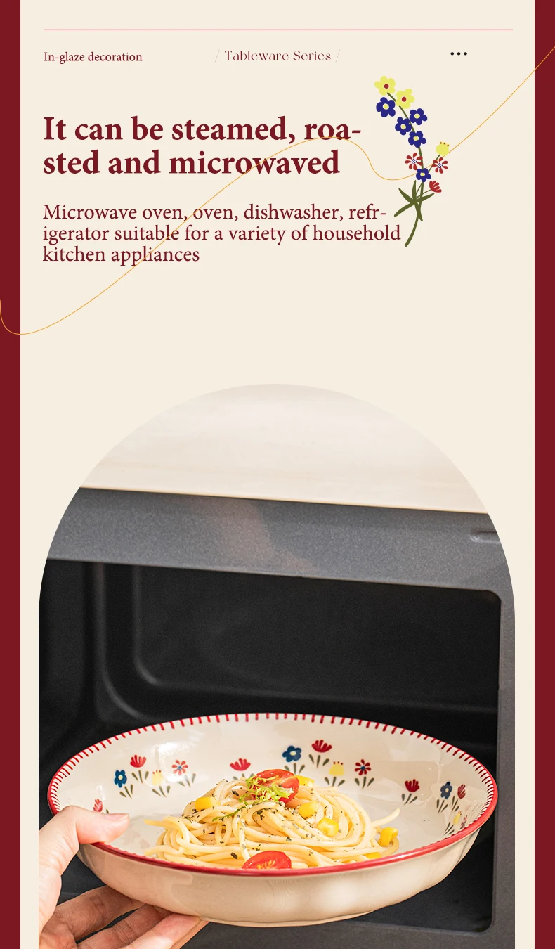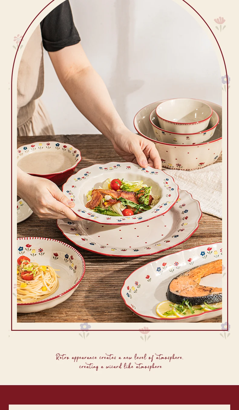 - أواني طعام سيراميك عتيقة عالية الجودة وعاء حساء سيراميك طبق معكرونة سلطة ميكروويف آمنة أطباق سيراميك ملونة مجموعة أوعية