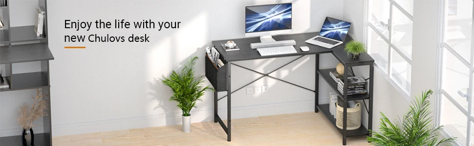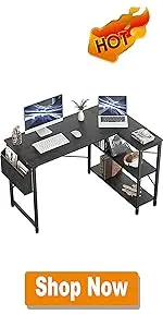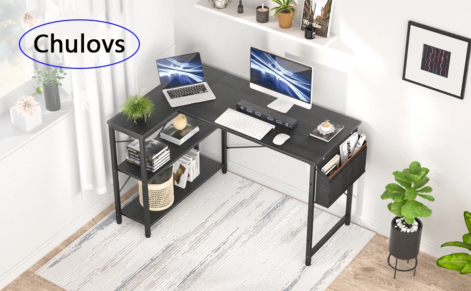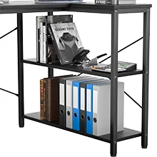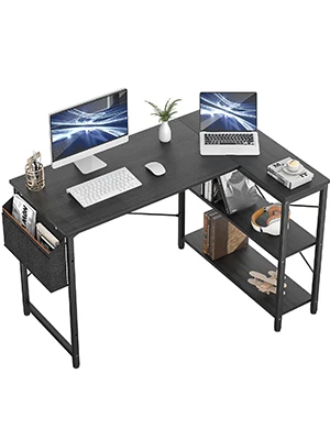 يجمع هذا المكتب ذو الطراز الصناعي على شكل حرف L بين سطح المكتب الفاخر وأرفف المكتب السفلية، مما يوفر مساحة واسعة لجهاز الكمبيوتر والكتب والملفات المكتبية وغيرها من الزخارف.تصميم صغير على شكل حرف L يناسب بالتأكيد مساحة الزاوية الصغيرة.