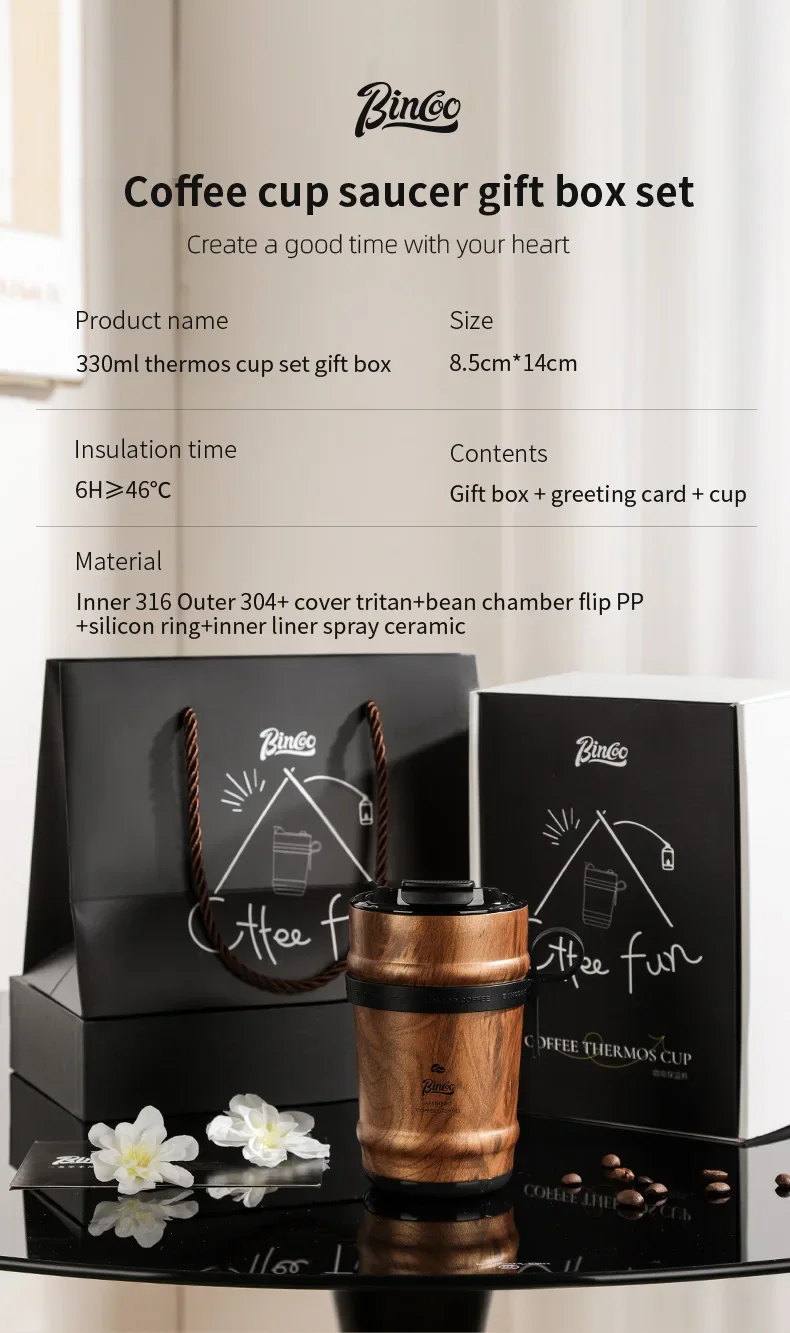 كوب قهوة حراري من بينكو سعة 330 مل، مصنوع من الفولاذ المقاوم للصدأ 316 بجدار مزدوج وبطانة سيراميك، معزول بالفراغ، كوب سفر مانع للتسرب، يأتي في علبة هدايا