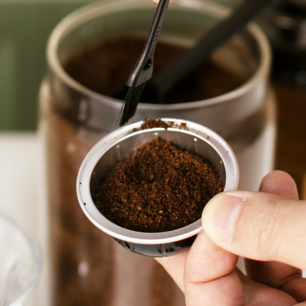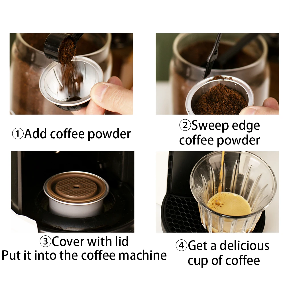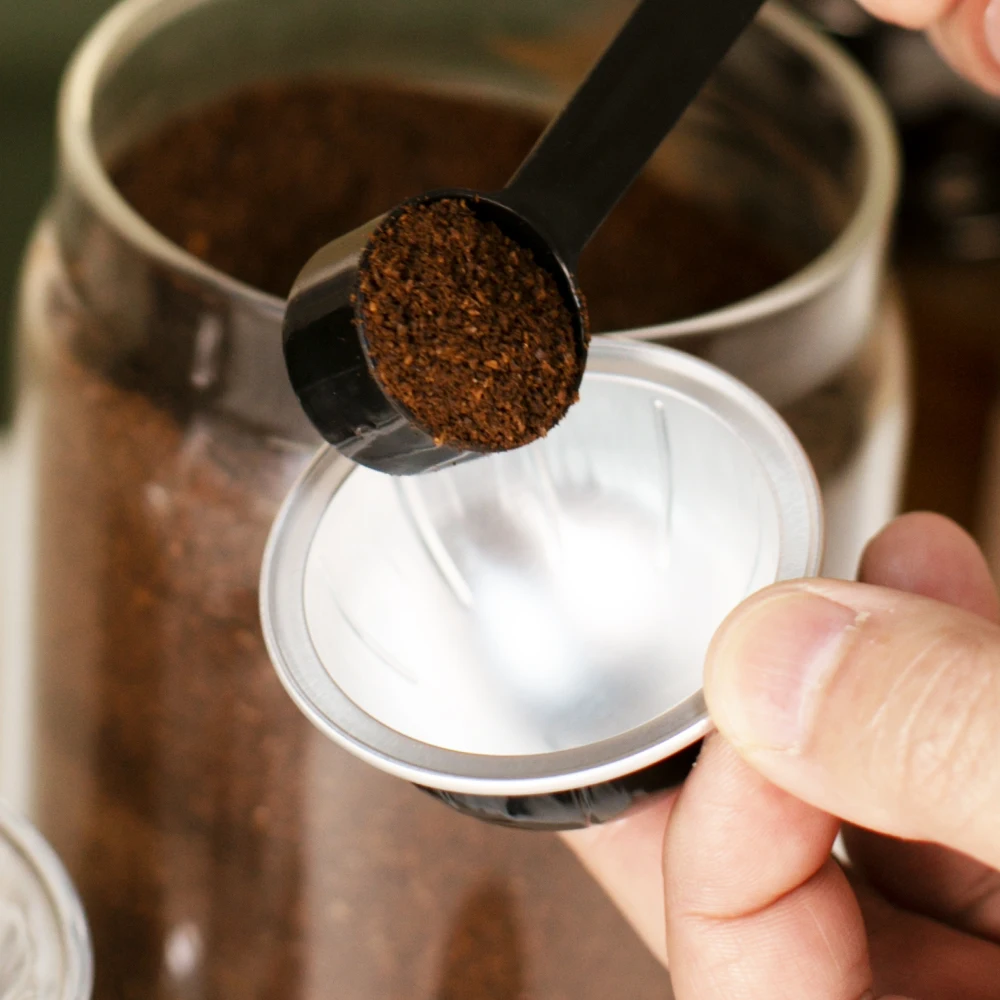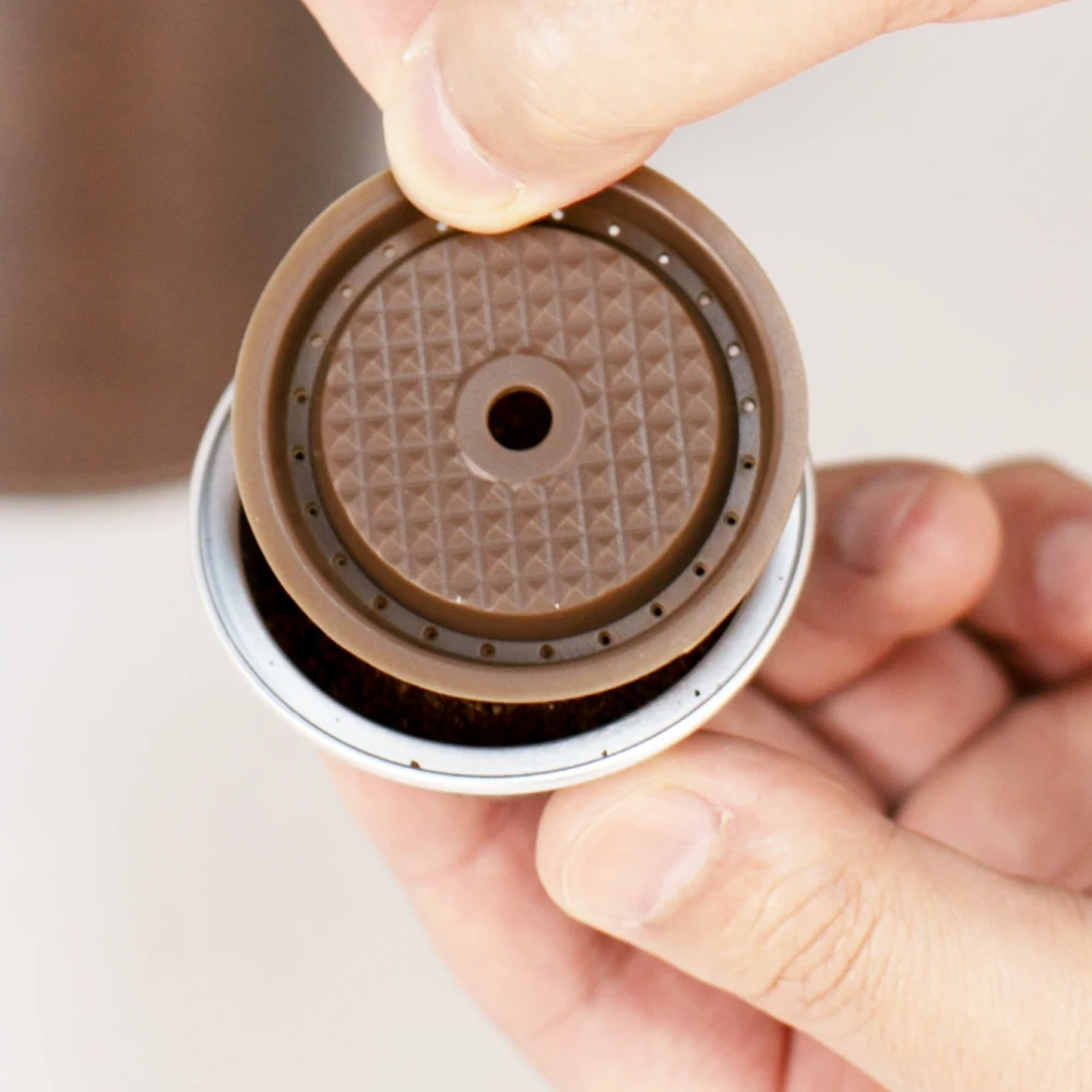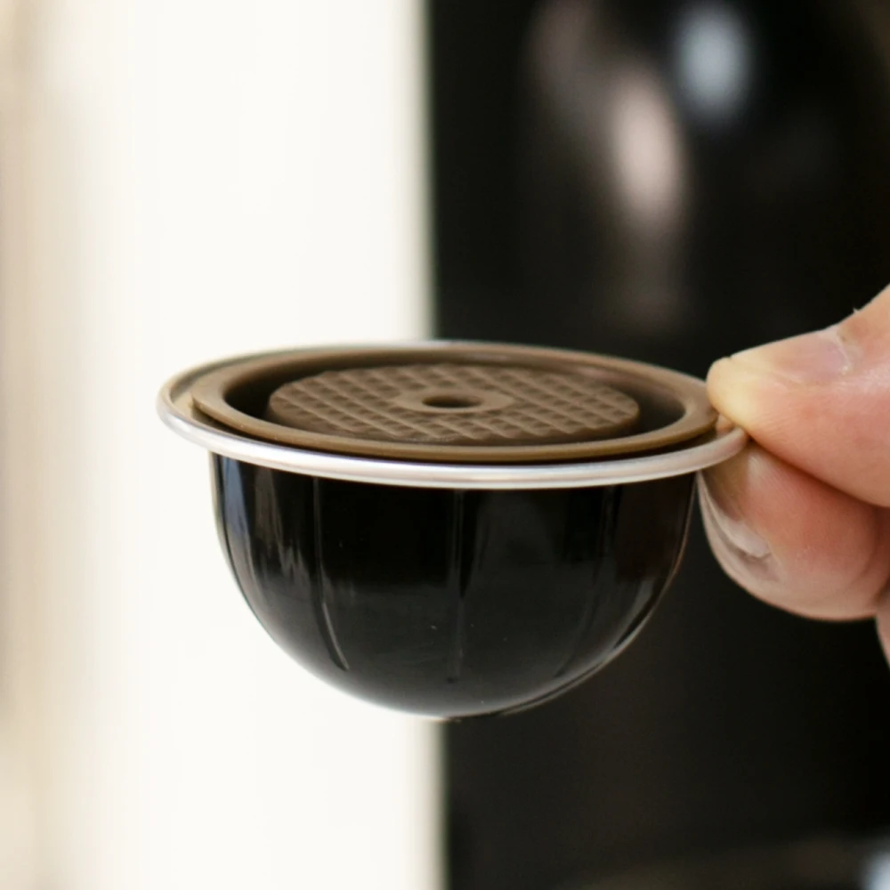 فلتر كبسولة قهوة من الألومنيوم قابل لإعادة الاستخدام 300 مرة - أسود مع غطاء سيليكون
