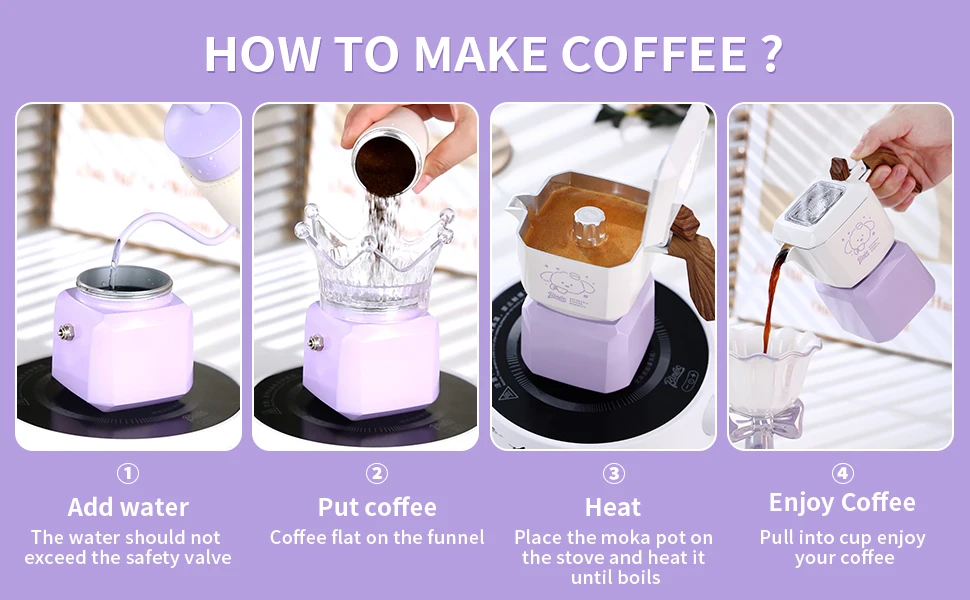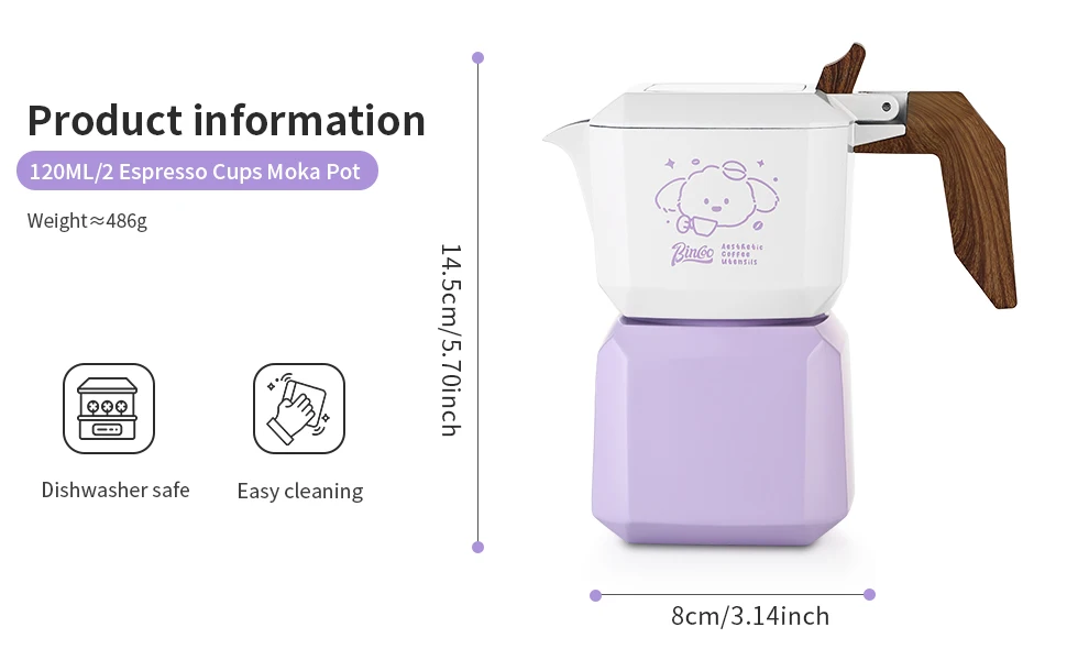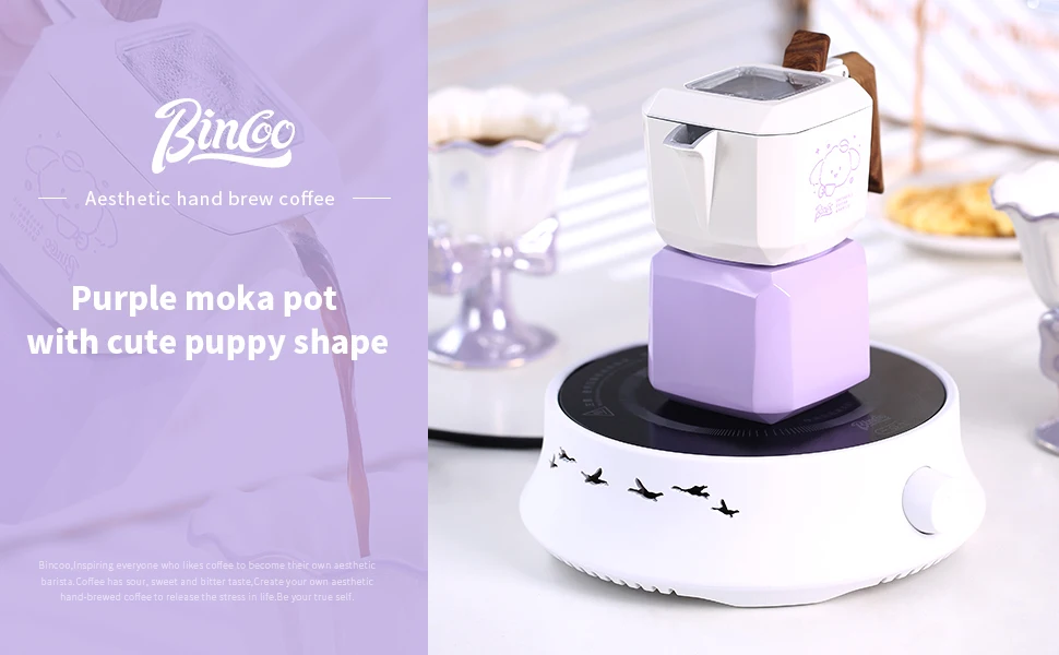 طقم صانع القهوة الموكا بتصميم حيواني من بينكو، نظام صمام مزدوج، صانع قهوة مدمج للموقد، فكرة هدية مثالية