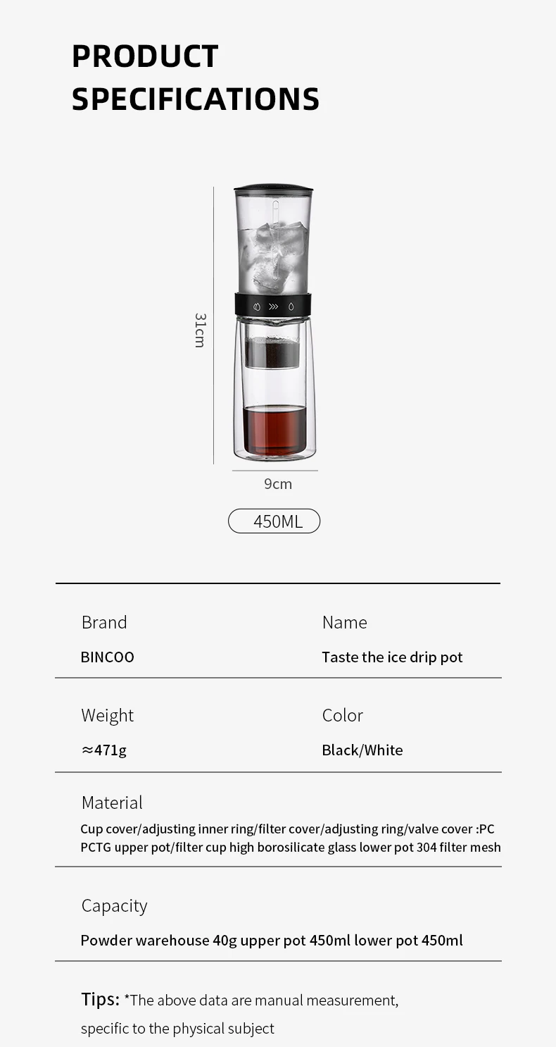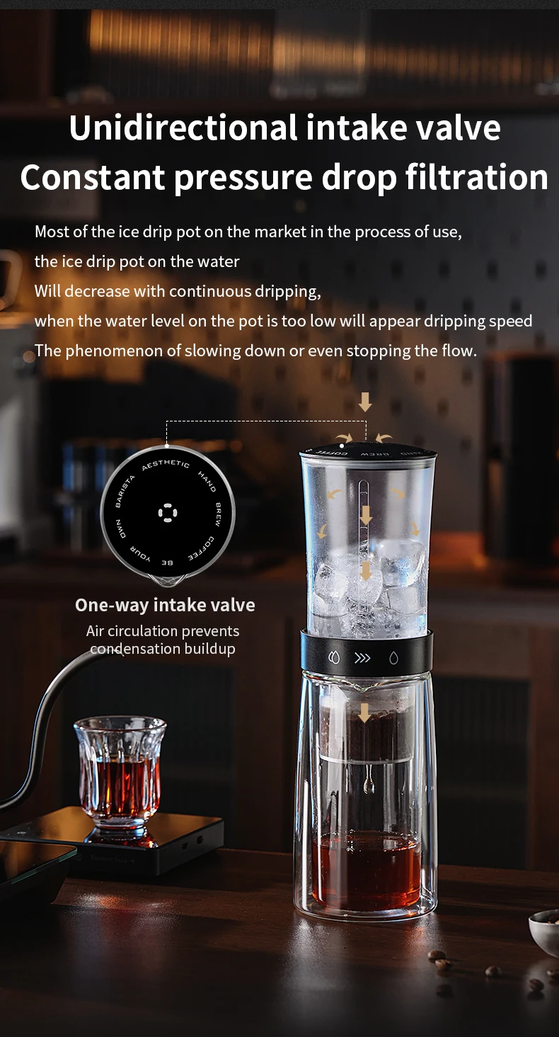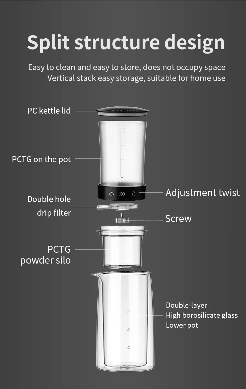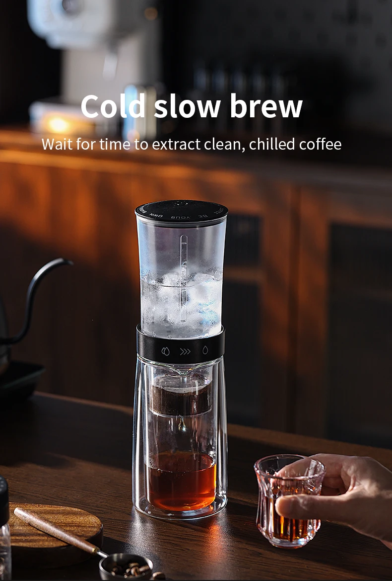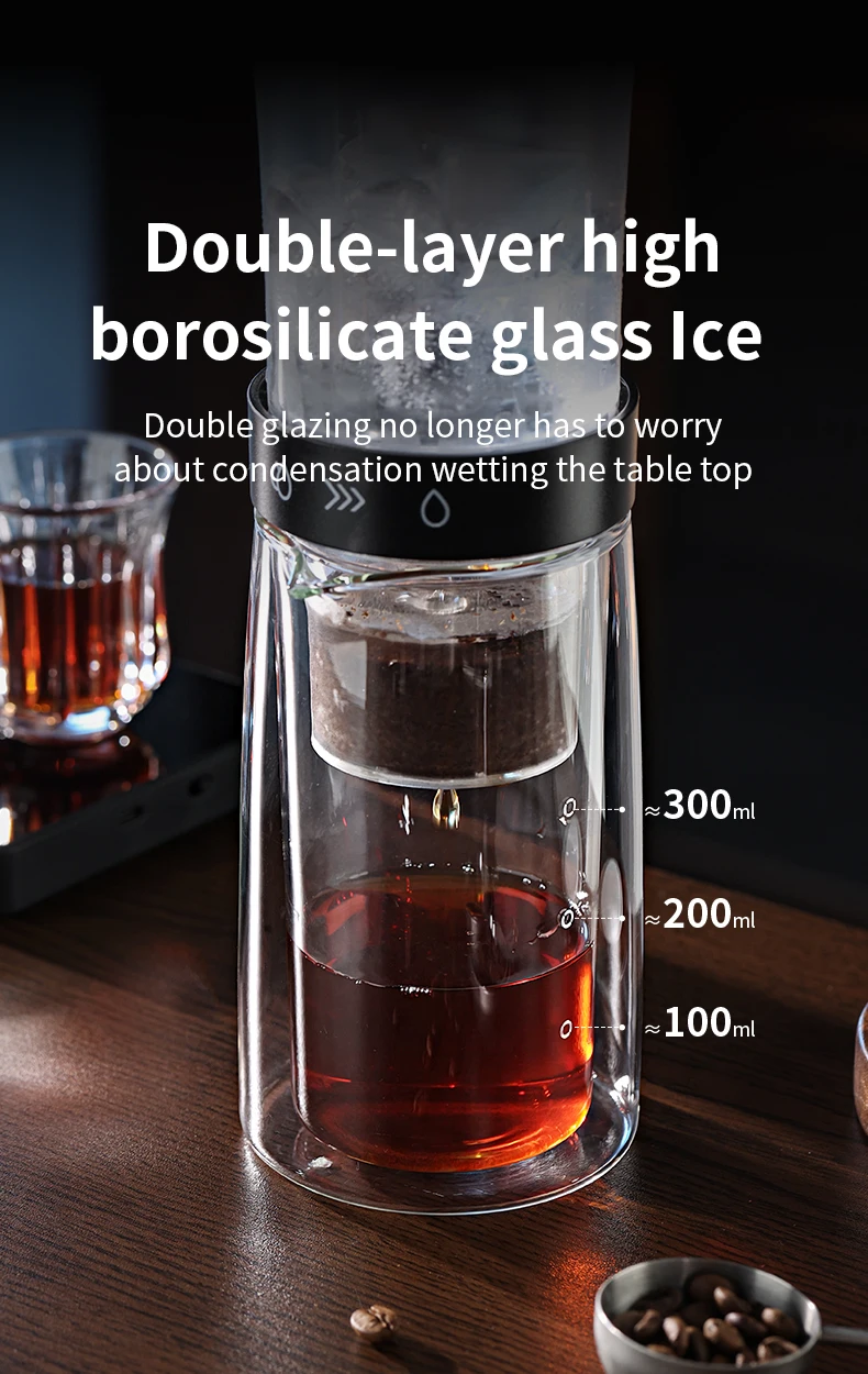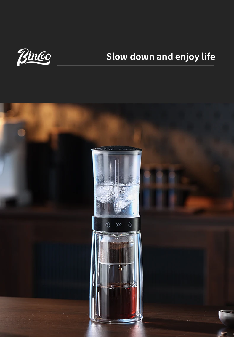 صانع القهوة الباردة من بينكو بتصميم زجاجي مزدوج الطبقات، مثالي لتحضير القهوة الباردة في المنزل وصب القهوة المثلجة والتخمير البارد