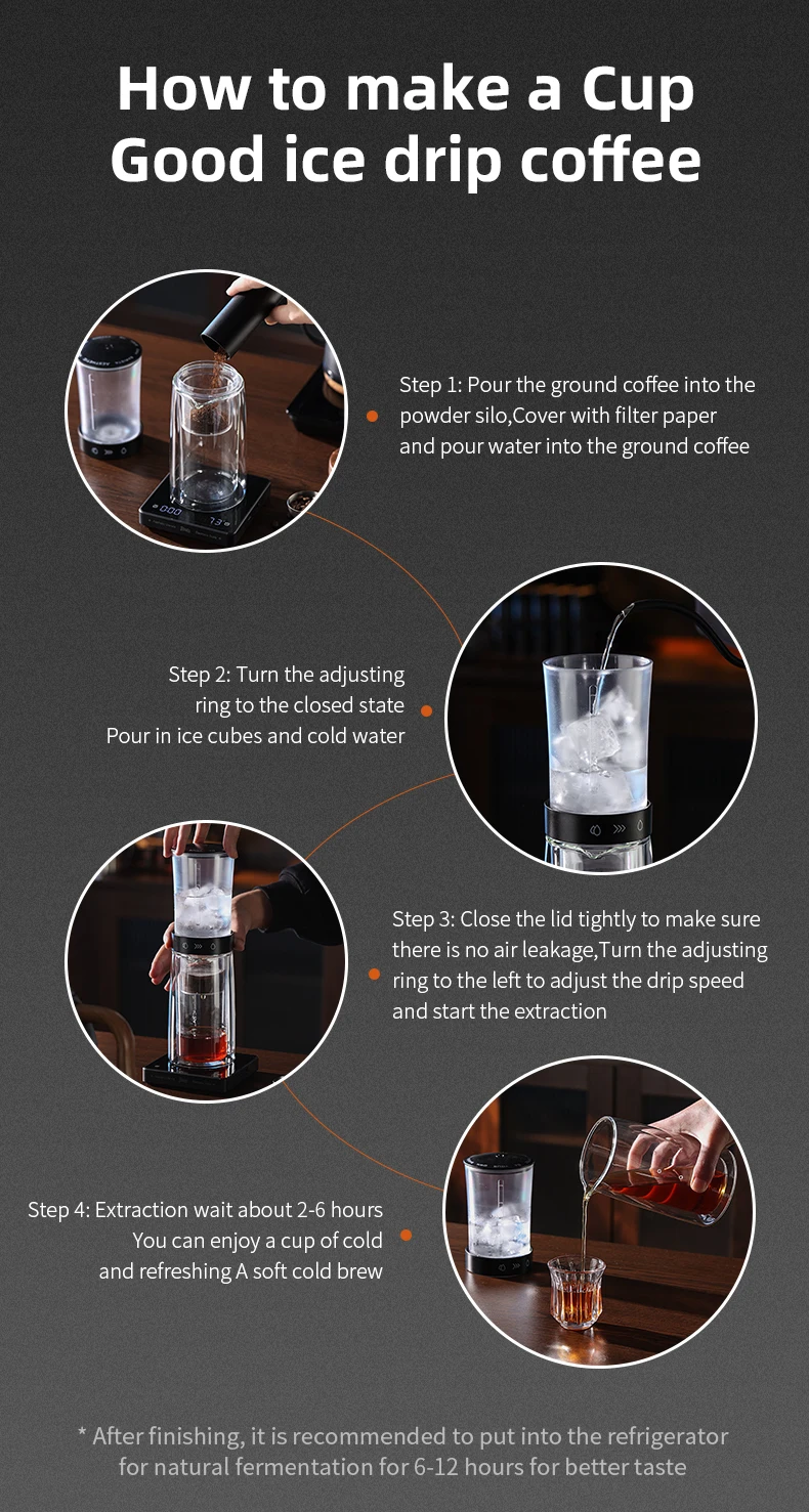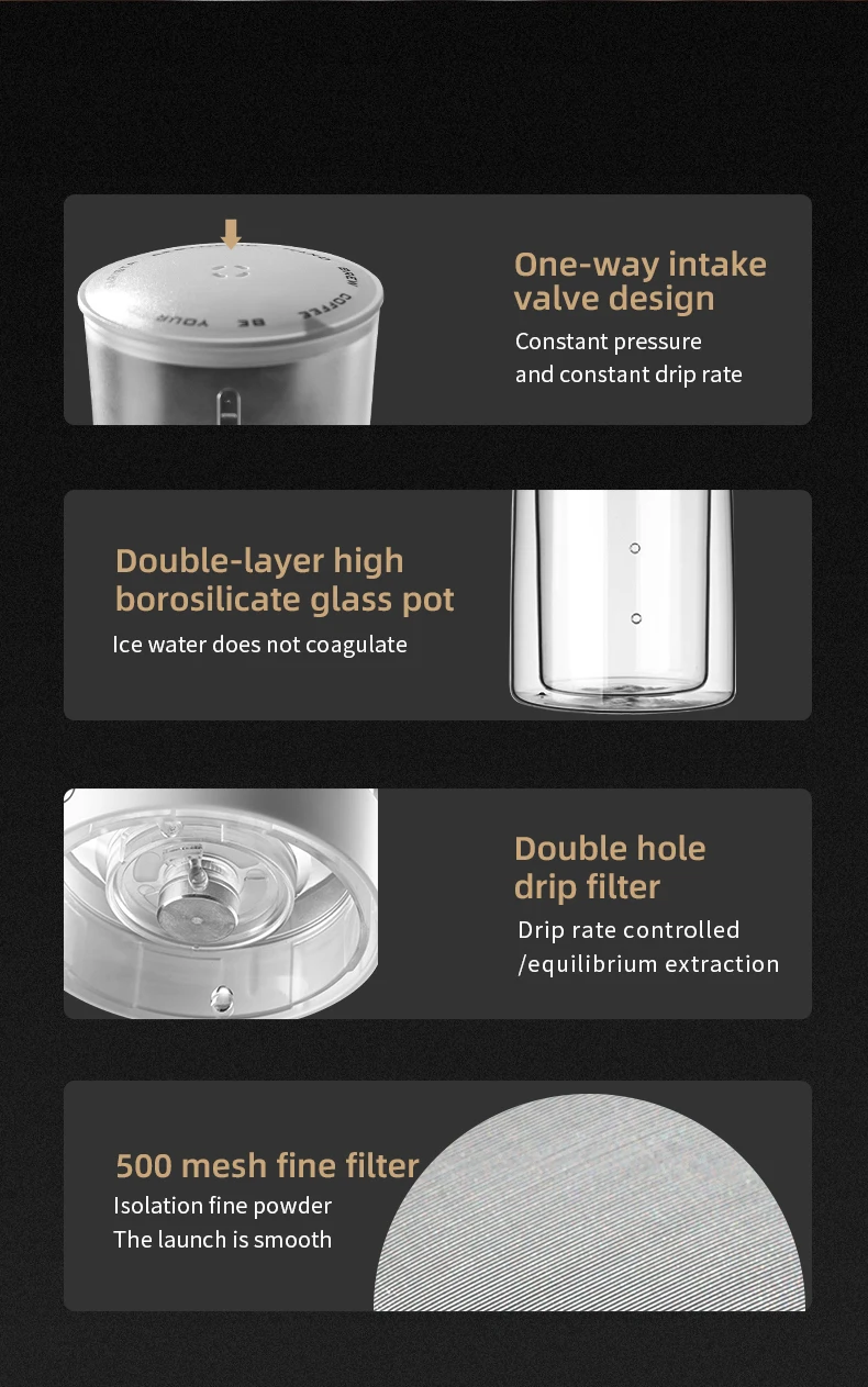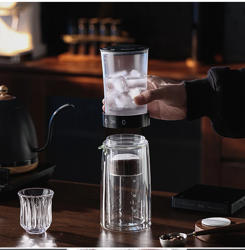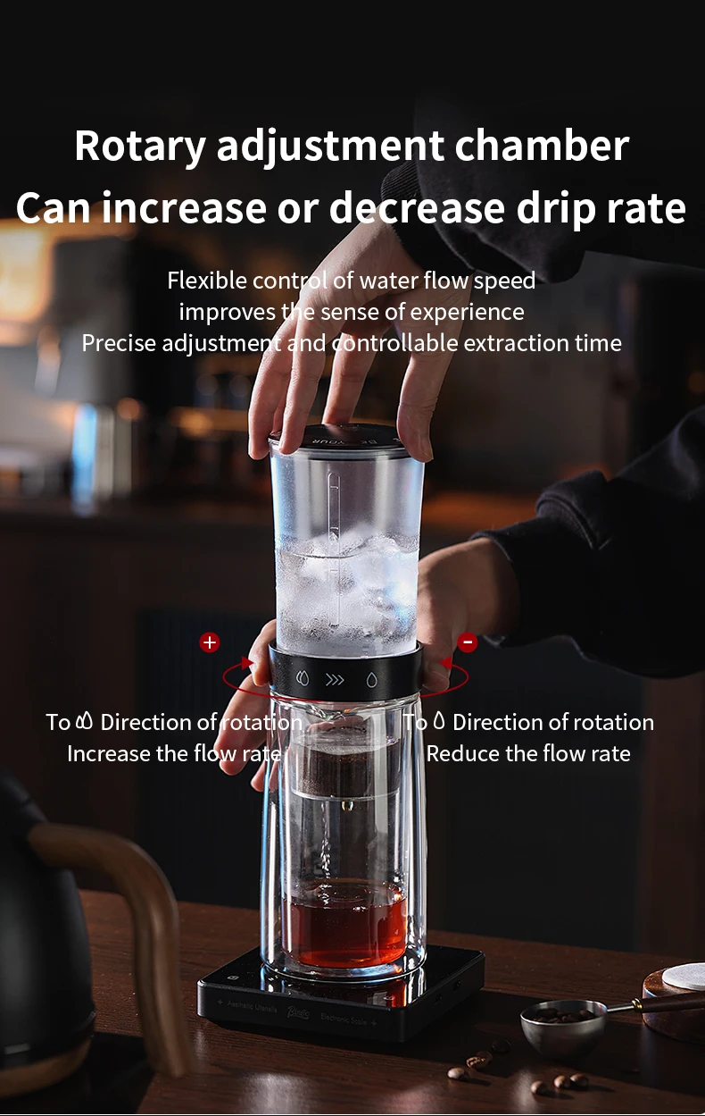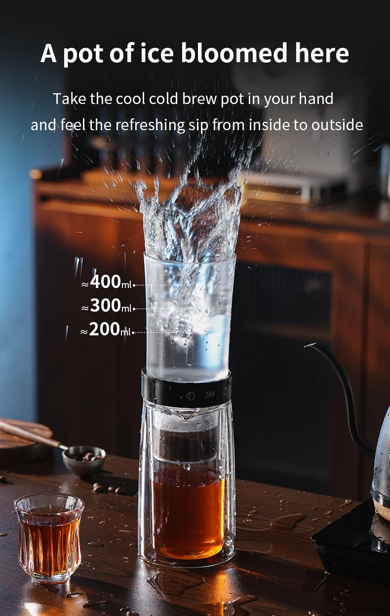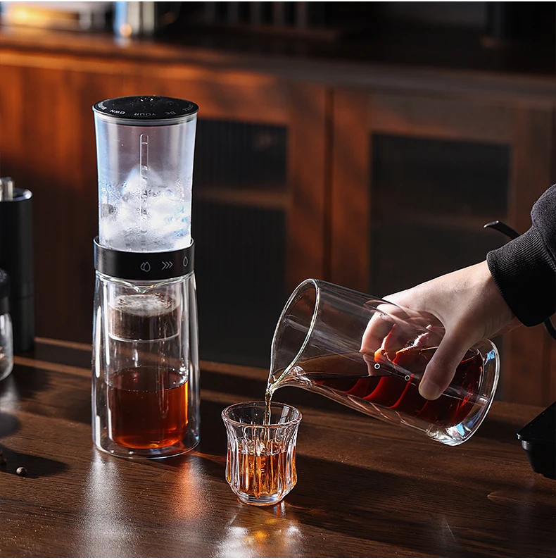 صانع القهوة الباردة من بينكو بتصميم زجاجي مزدوج الطبقات، مثالي لتحضير القهوة الباردة في المنزل وصب القهوة المثلجة والتخمير البارد