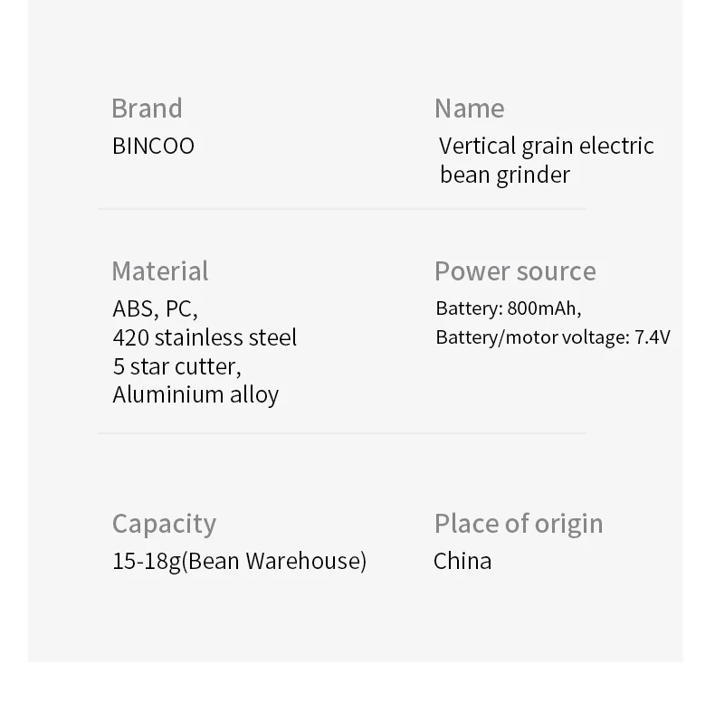 مطحنة قهوة كهربائية USB قابلة للشحن Bincoo