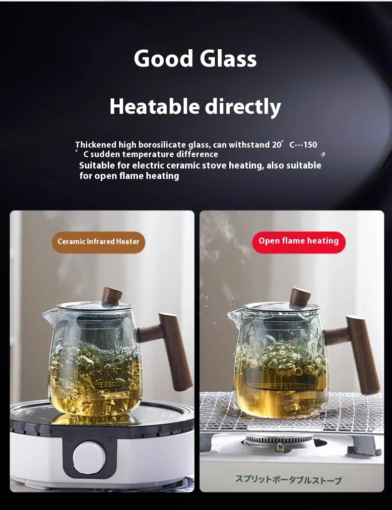 إبريق شاي Gianxi فصل الشاي إبريق شاي زجاجي عالي البورسليكات إبريق شاي عالي الجودة إبريق شاي منزلي مقاوم لدرجات الحرارة العالية
