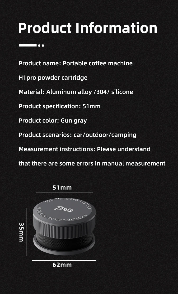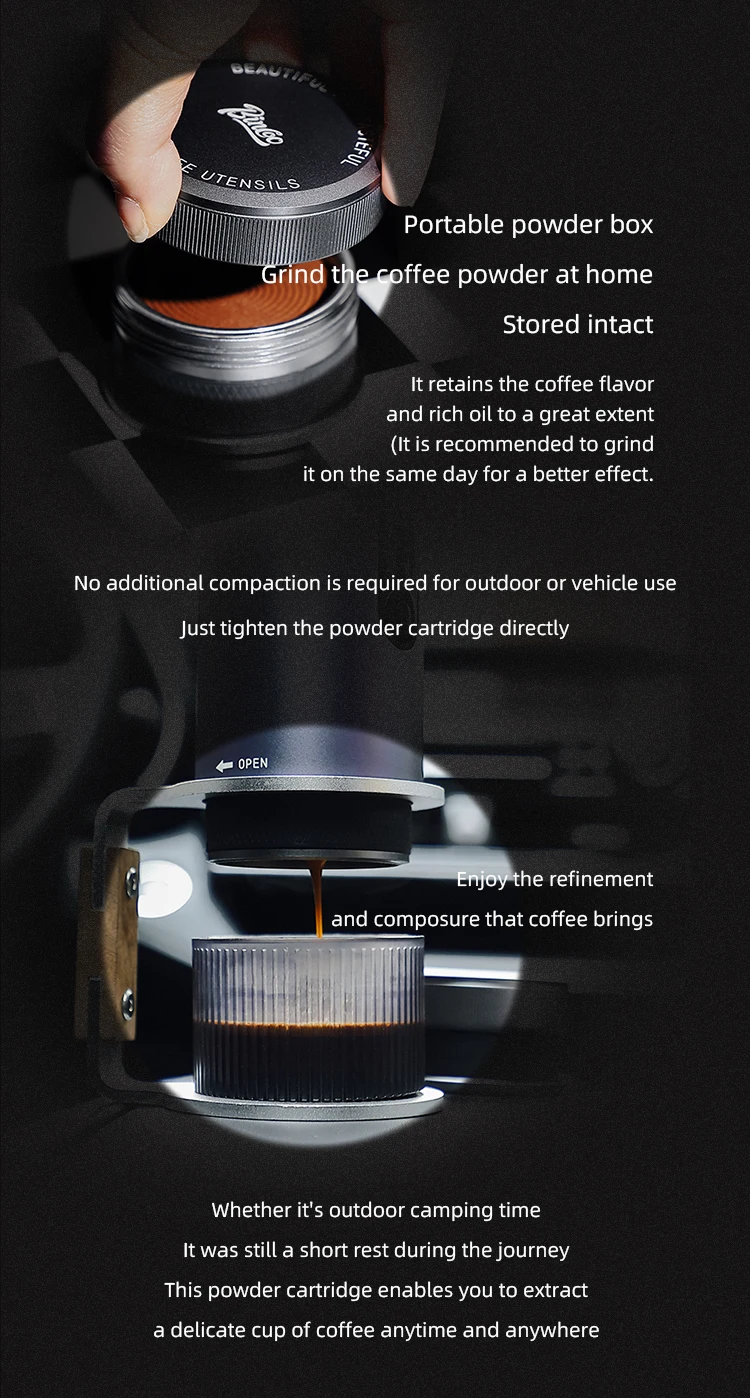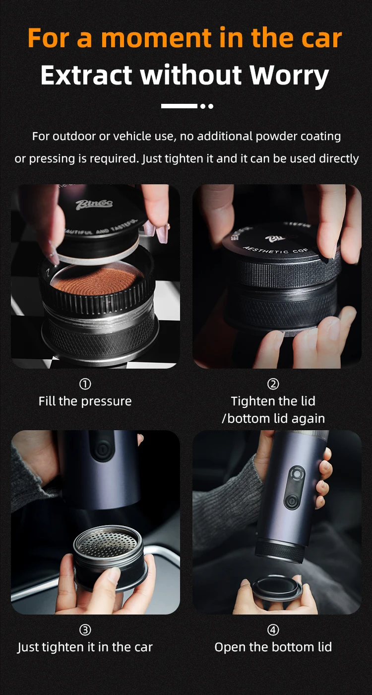 ماكينة القهوة المحمولة Bincoo H1 Pro صندوق مسحوق القهوة الإيطالية اللاسلكية التدفئة ماكينة الاسبريسو ملحق للمنزل في الهواء الطلق 51 مللي متر