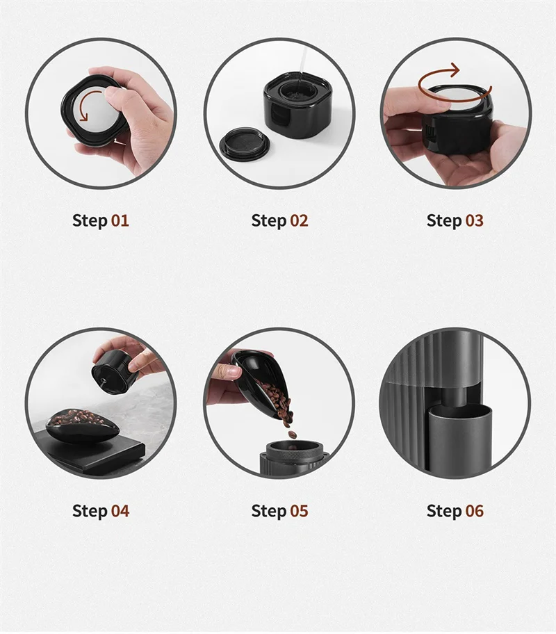 إزالة فعّالة للكهرباء الساكنة: يستخدم تقنية التذرية المتطورة لإطلاق قطرات ضباب دقيقة للغاية، مما يقلل بشكل كبير من تراكم الكهرباء الساكنة.يمنع تكتل القهوة المطحونة، مما يعزز الكفاءة والنكهة.