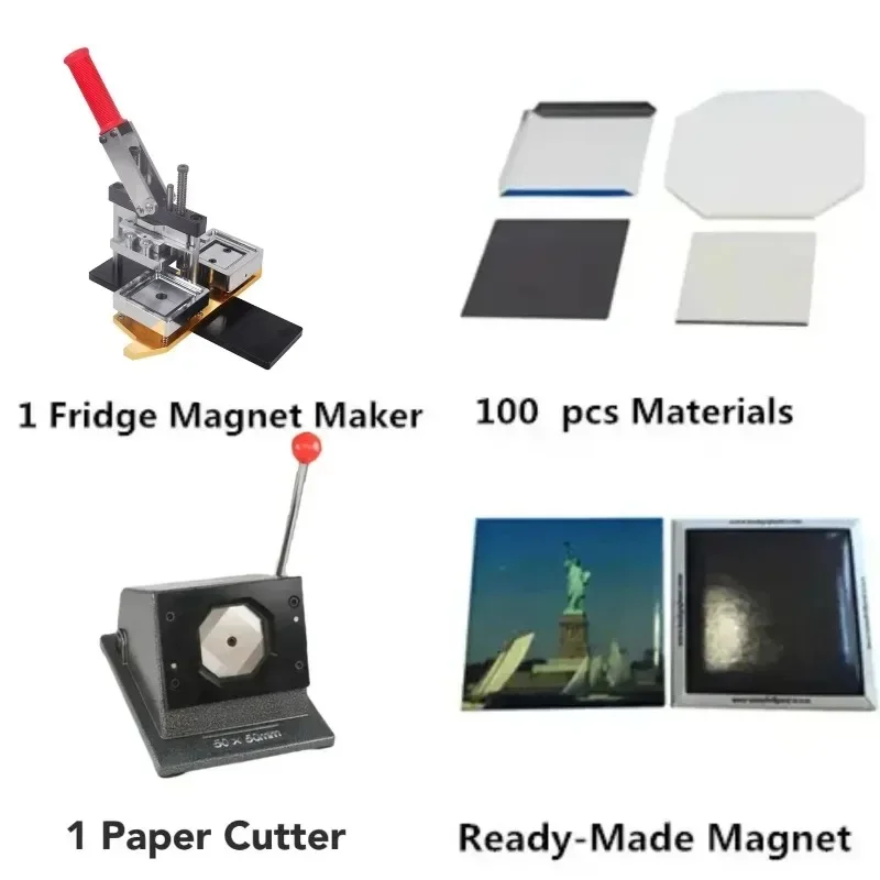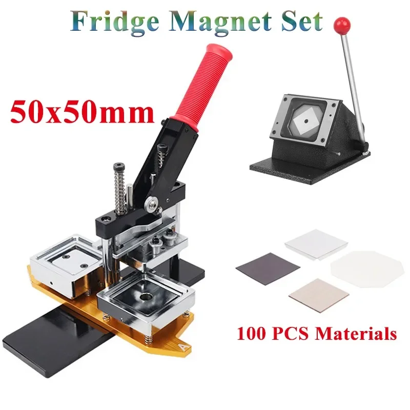 - ماكينة ضغط مغناطيسية مربعة للثلاجة ، مجموعة كاملة ، صفائح معدنية دوارة مع قاطع ، أجزاء مغناطيسية ، 50 × 50 ، 63.5 × 63.5 مم