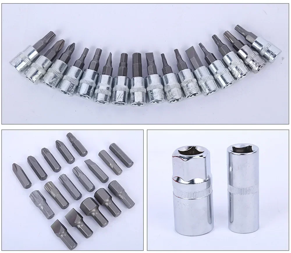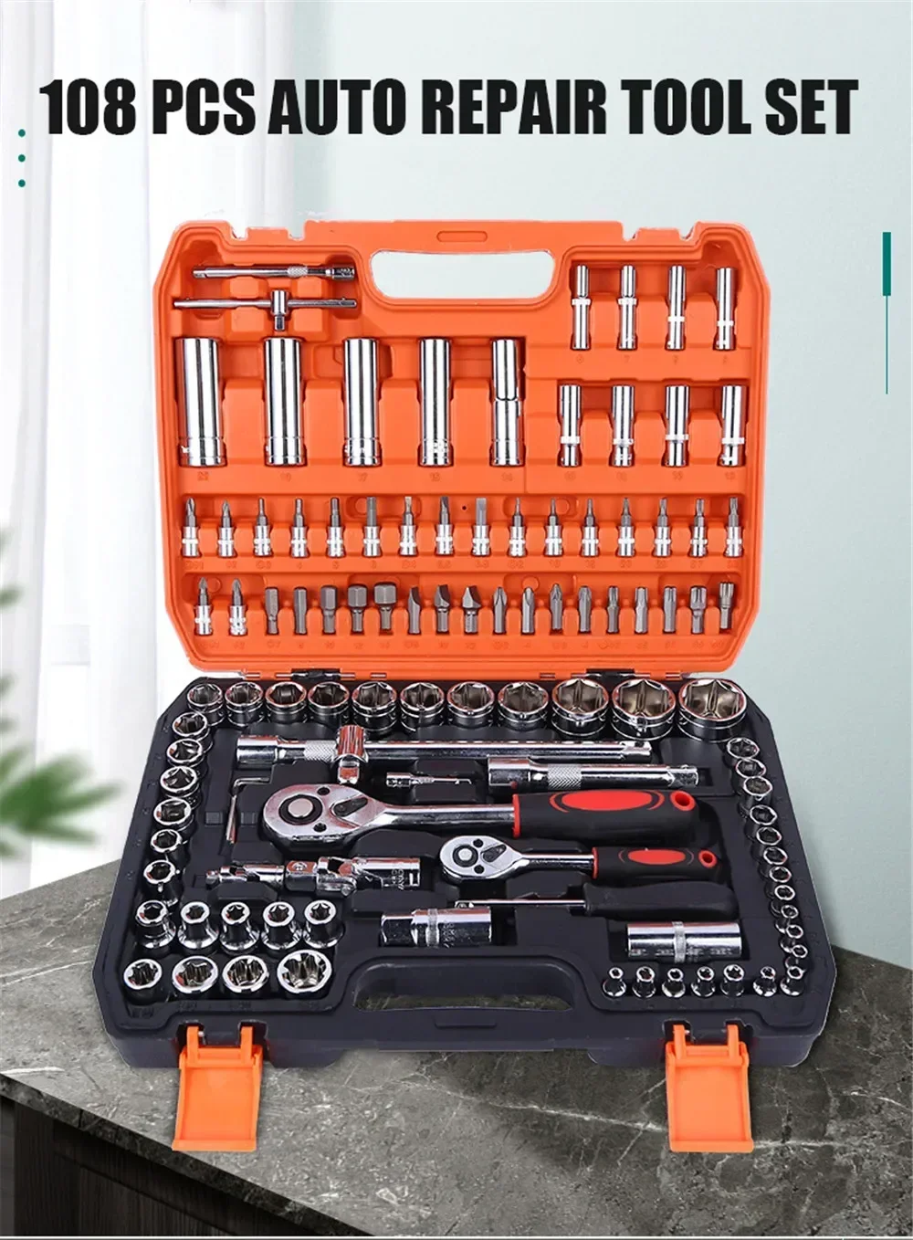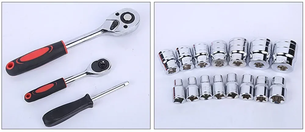 مجموعة أدوات يدوية مع صندوق أدوات ، مجموعة مقبس تأثير ، دراجة نارية ، دراجة ، سيارة ، مختلطة ،