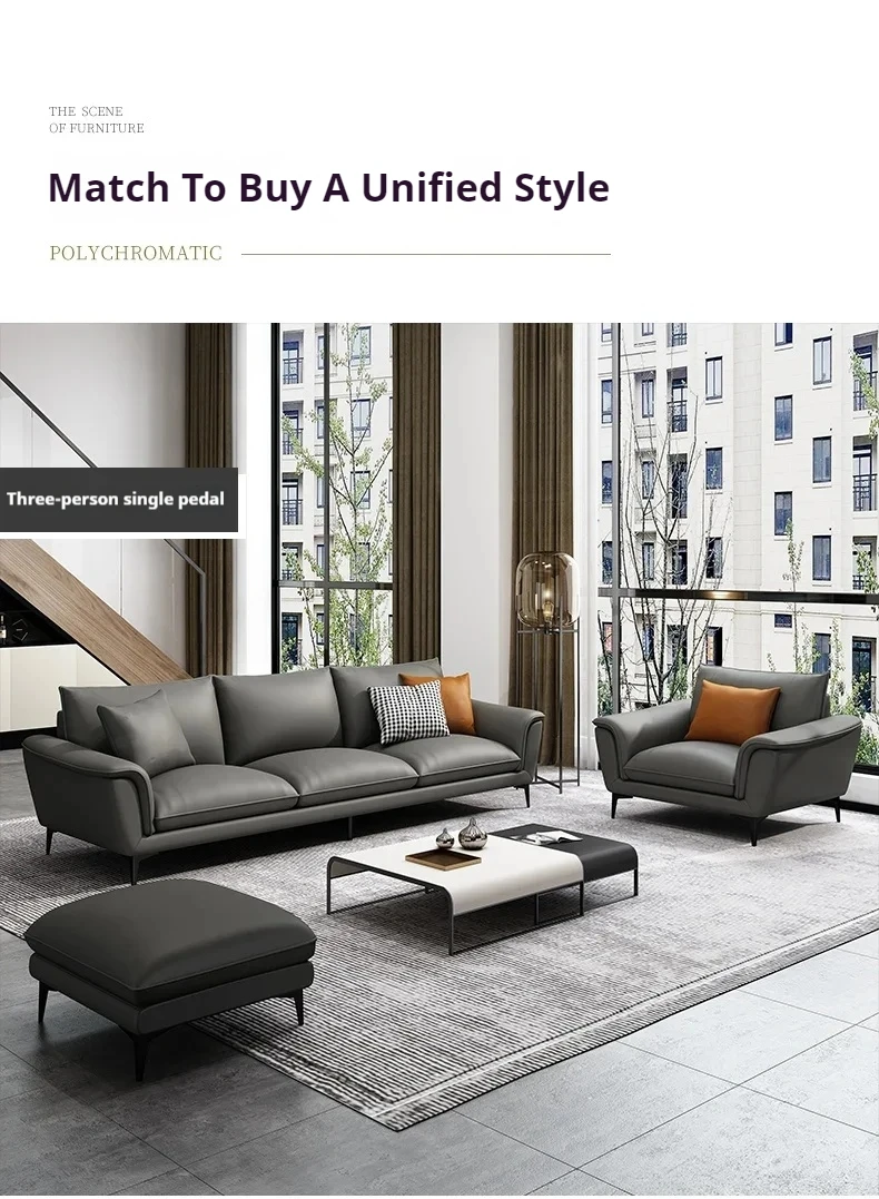 أريكة كبيرة عصرية مريحة ، أريكة استقبال بسيطة ، مقطعية جلدية ، أريكة شمالية ، صالة كلاسيكية ، أثاث منزلي