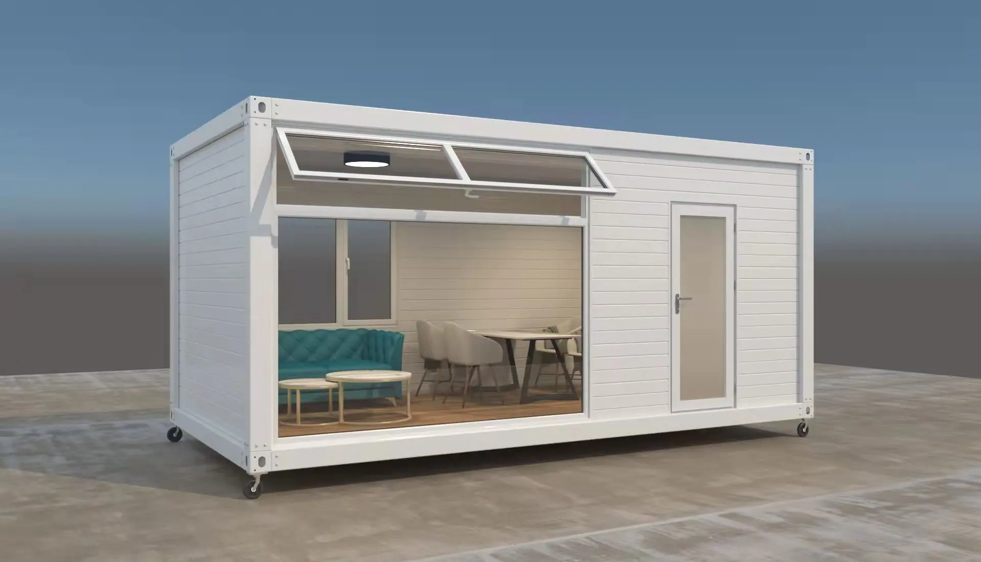 الداخلية 6055 مللي متر * 2438 مللي متر * 2896 مللي متر/الخارجي 6055 مللي متر * 2990 مللي متر * 2896 مللي متر