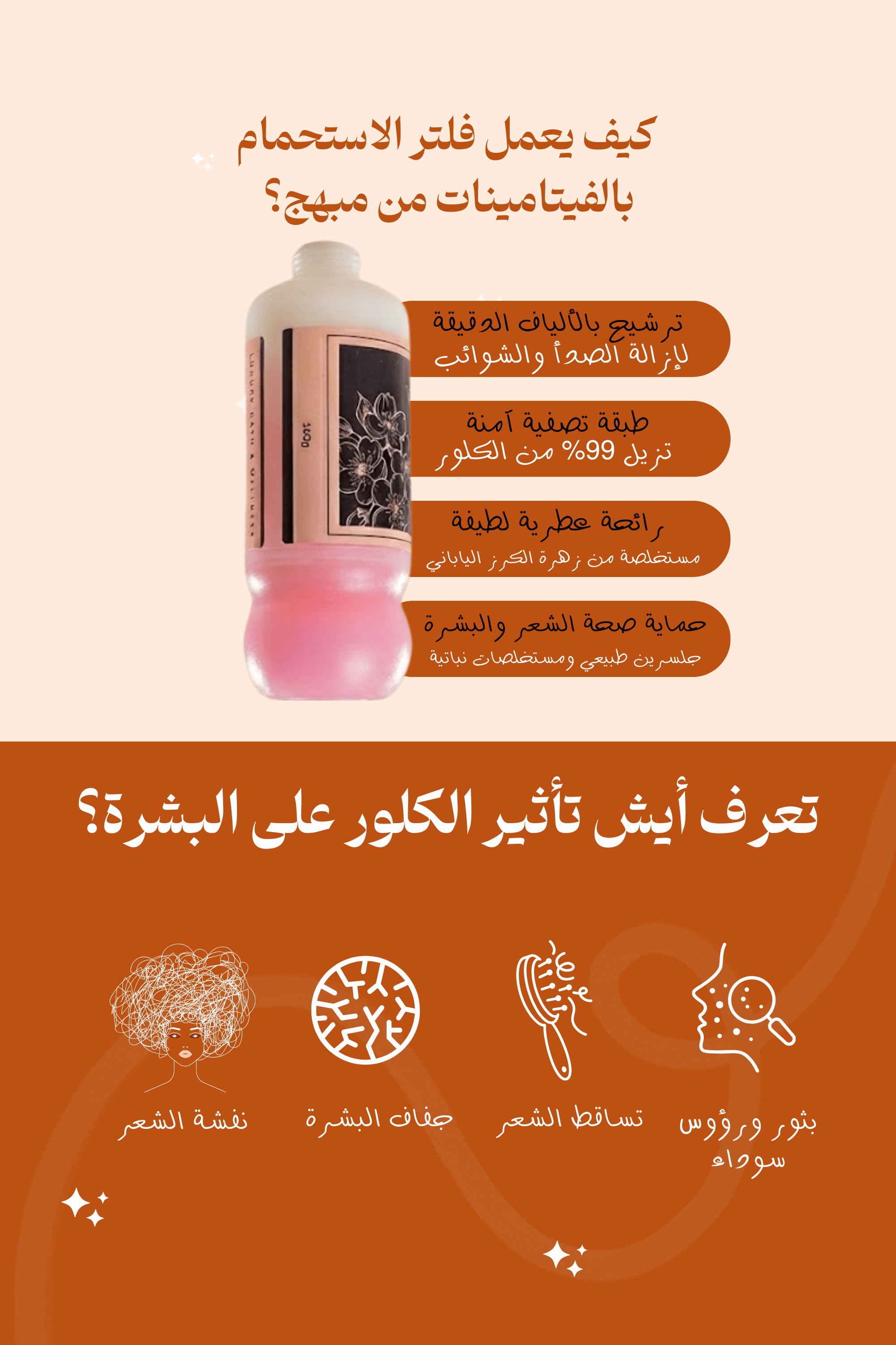 ✅ فلترة متقدمة تزيل ما يصل إلى 99% من الكلور.