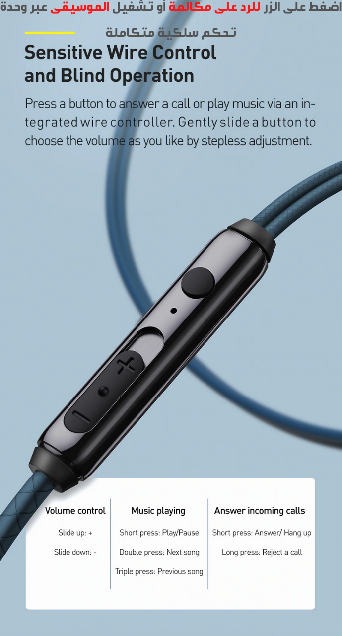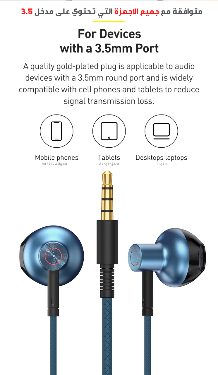 سماعة سلكية مع ميكروفون بمدخل اوكس 3.5/ 3.5 . Wired Headset With Mic Input