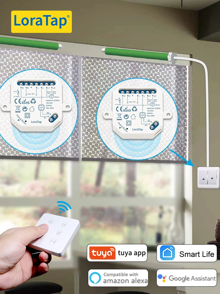 ريموت تحكم عن بعد لقناتين مفتاح ستارة LoraTap الذكي يعمل بتطبيق ذكي متوافق مع تويا إليكسا وجوجل فويس
