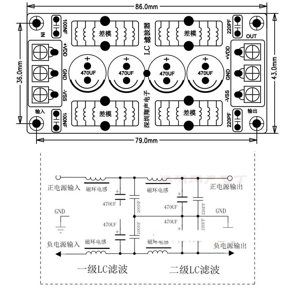 - نوع الفلتر: فلتر EMI منخفض التمرير LC لمصدر طاقة مزدوج DC