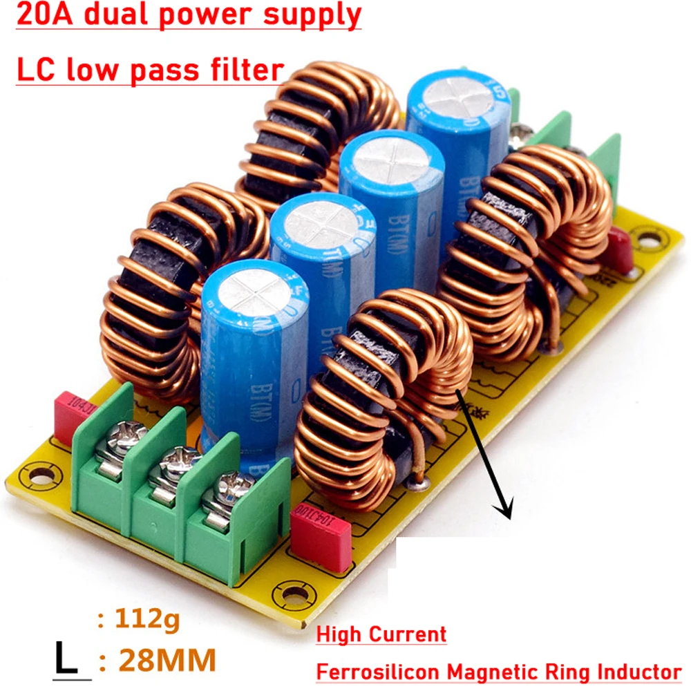 باستخدام دائرة فلتر LC (محث-مكثف) منخفض التمرير متعددة المراحل (مرحلتين لكل خط جهد)، يضمن هذا الفلتر تنقية فعالة لمصدر الطاقة، وهو أمر ضروري لتطبيقات مثل مضخمات صوت السيارات التي تعمل في بيئات السيارات المليئة بالضوضاء. يتحمل الفلتر أحمالاً عالية تصل إلى 20 أمبير ويعمل مع جهد DC مزدوج يصل إلى +/- 50 فولت.