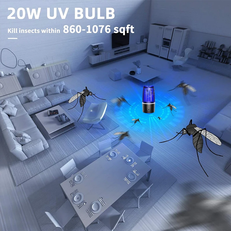 - آمن وفعال: يستخدم ضوء الأشعة فوق البنفسجية لجذب البعوض وشبكة كهربائية عالية الجهد للقضاء عليه.
