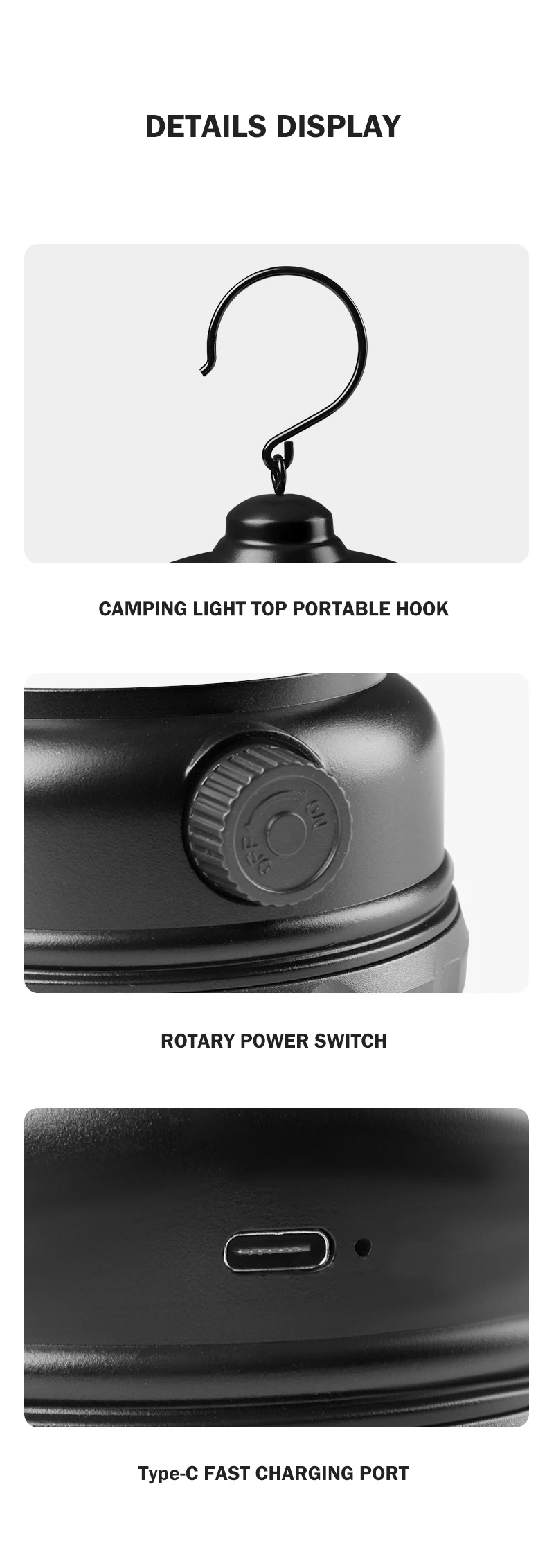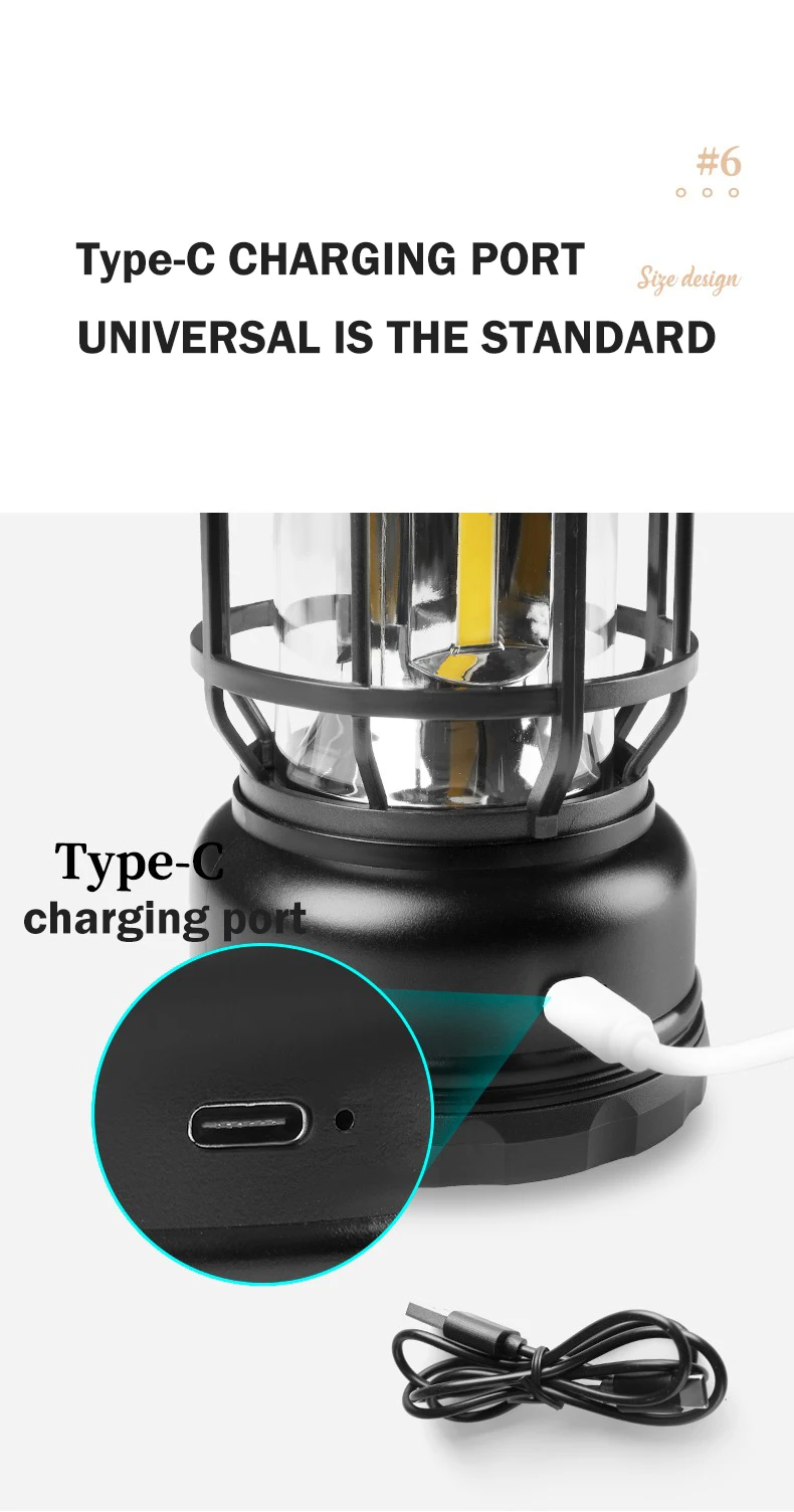 مع خاصية الشحن السريع من نوع Type-C، يمكنك شحن المصباح بسرعة والاستمتاع بساعات من الإضاءة. كما أنه يتميز بمنفذ طاقة USB، حتى تتمكن من استخدامه لشحن هاتفك في حالات الطوارئ.