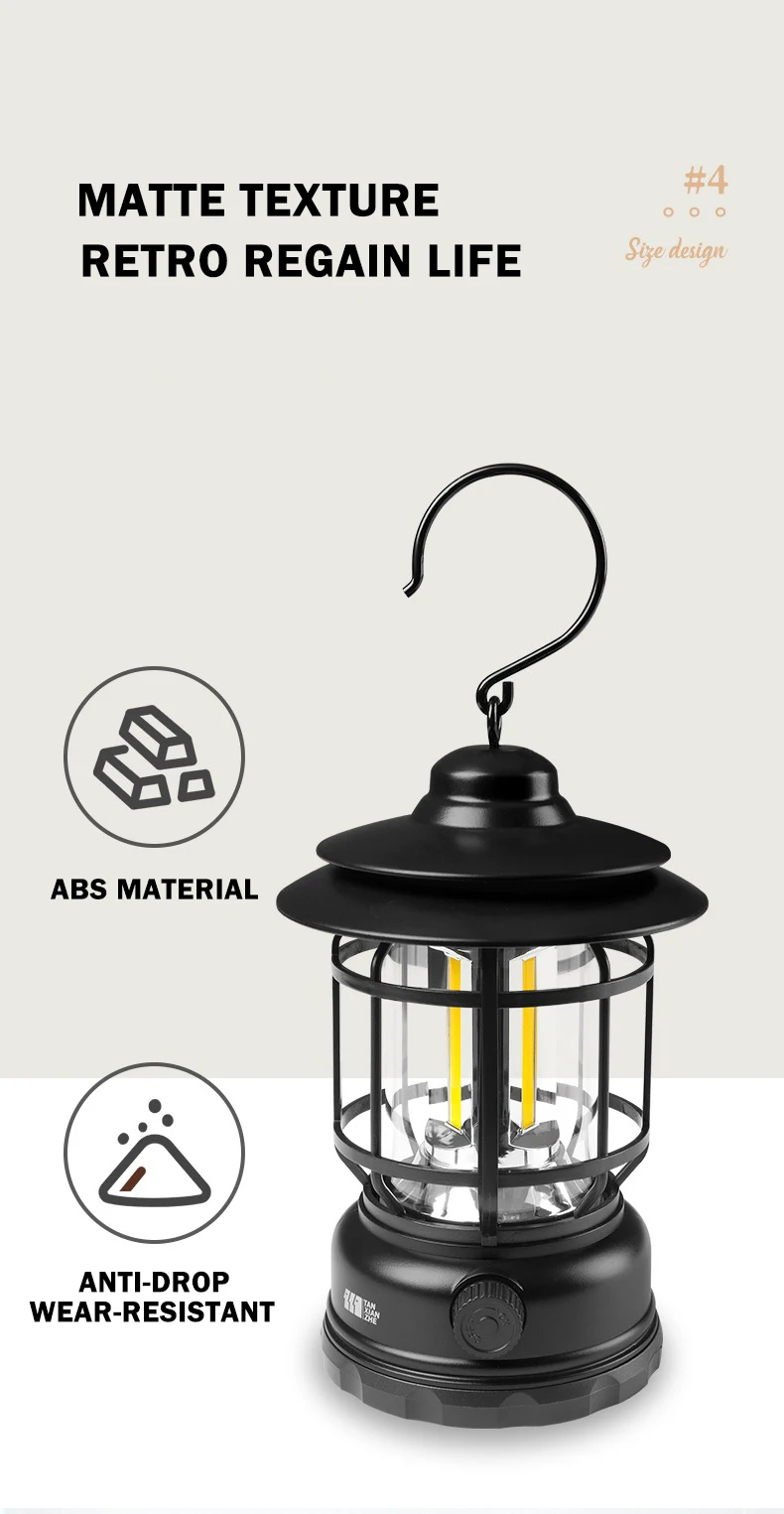 استمتع بسحر التخييم الكلاسيكي مع مصباح التخييم الخارجي "إتريك" من TANXIANZHE، المتوفر الآن في متجر أبحِر أونلاين! يجمع هذا المصباح ذو التصميم العتيق بين الجماليات الكلاسيكية و الوظائف الحديثة، مما يجعله إضافة مثالية لكشتاتك وطلعاتك.