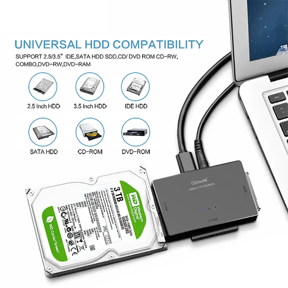 - يدعم محول GeeM SATA / IDE إلى USB 3.0 مجموعة واسعة من محركات الأقراص الصلبة، بما في ذلك محركات الأقراص الصلبة 2.5 بوصة و 3.5 بوصة وأقراص SSD. يوفر نقل بيانات فائق السرعة بفضل واجهة USB 3.0. كما أنه سهل الاستخدام للغاية، ما عليك سوى توصيله والبدء في نقل البيانات.
