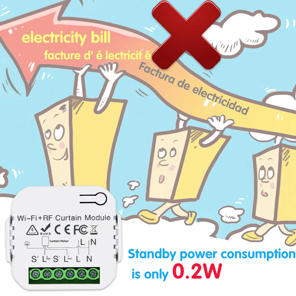 - سهولة التركيب: استبدل مفتاح الستارة الحالي الخاص بك بمفتاح ذكي هذا للحصول على ترقية سهلة.