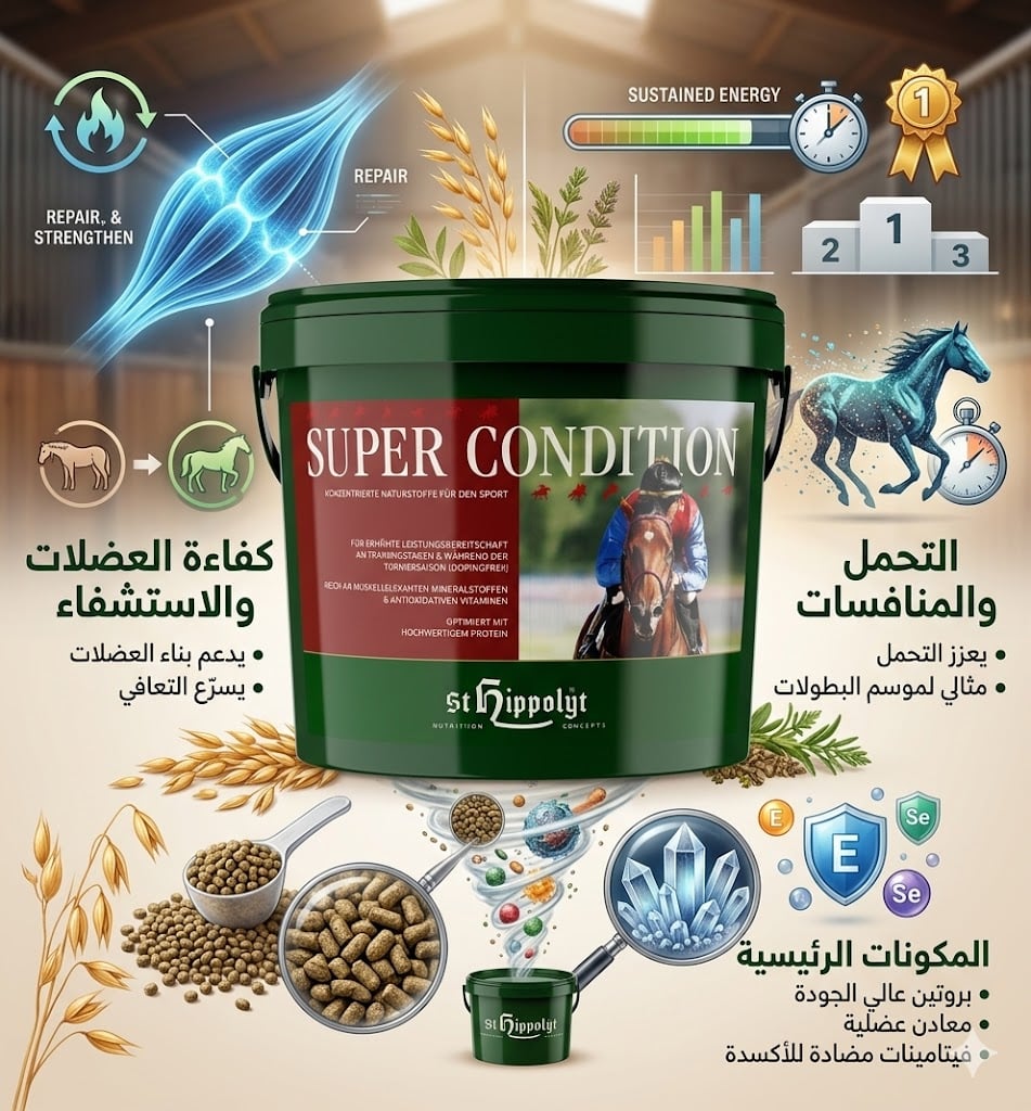 - مكمل غذائي لدعم العضلات والأداء للخيول الرياضية 5 كجم | Super Condition
