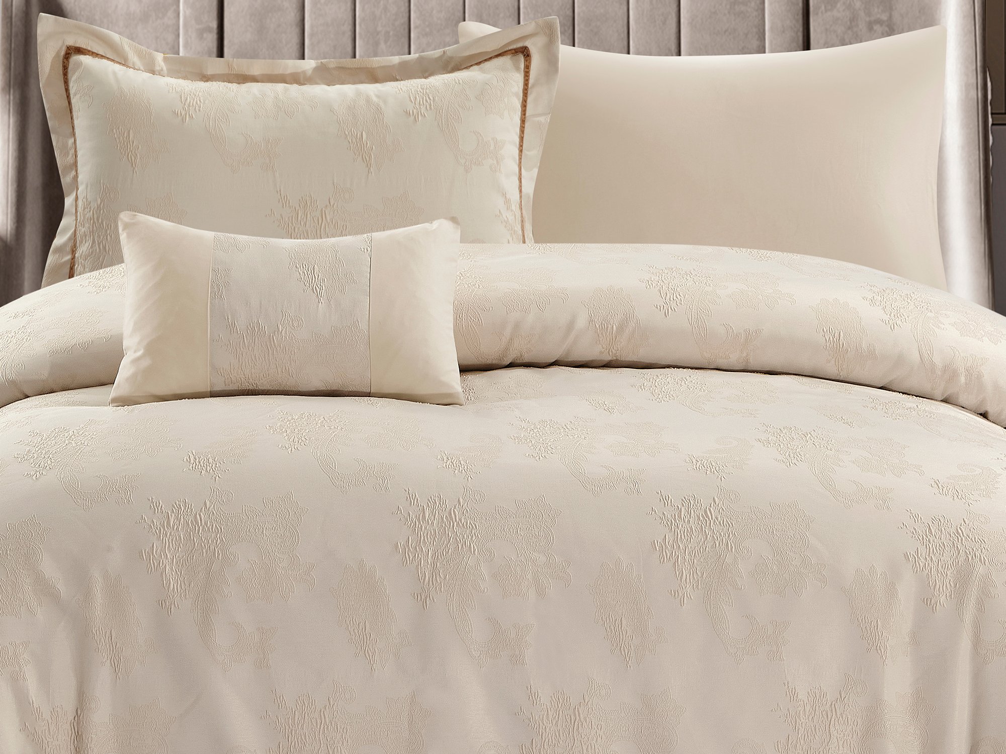 مفرش CARLA فاخر جاكار نفر ونص 6 قطع بيج فاتح.