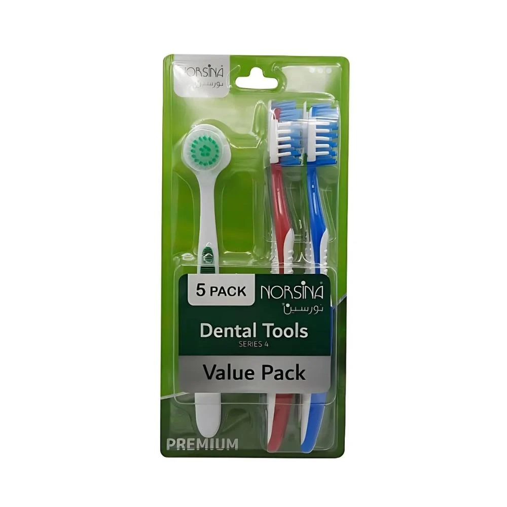 طقم فرش اسنان متوسطة مع فرشة لسان 5 قطع من نورسين