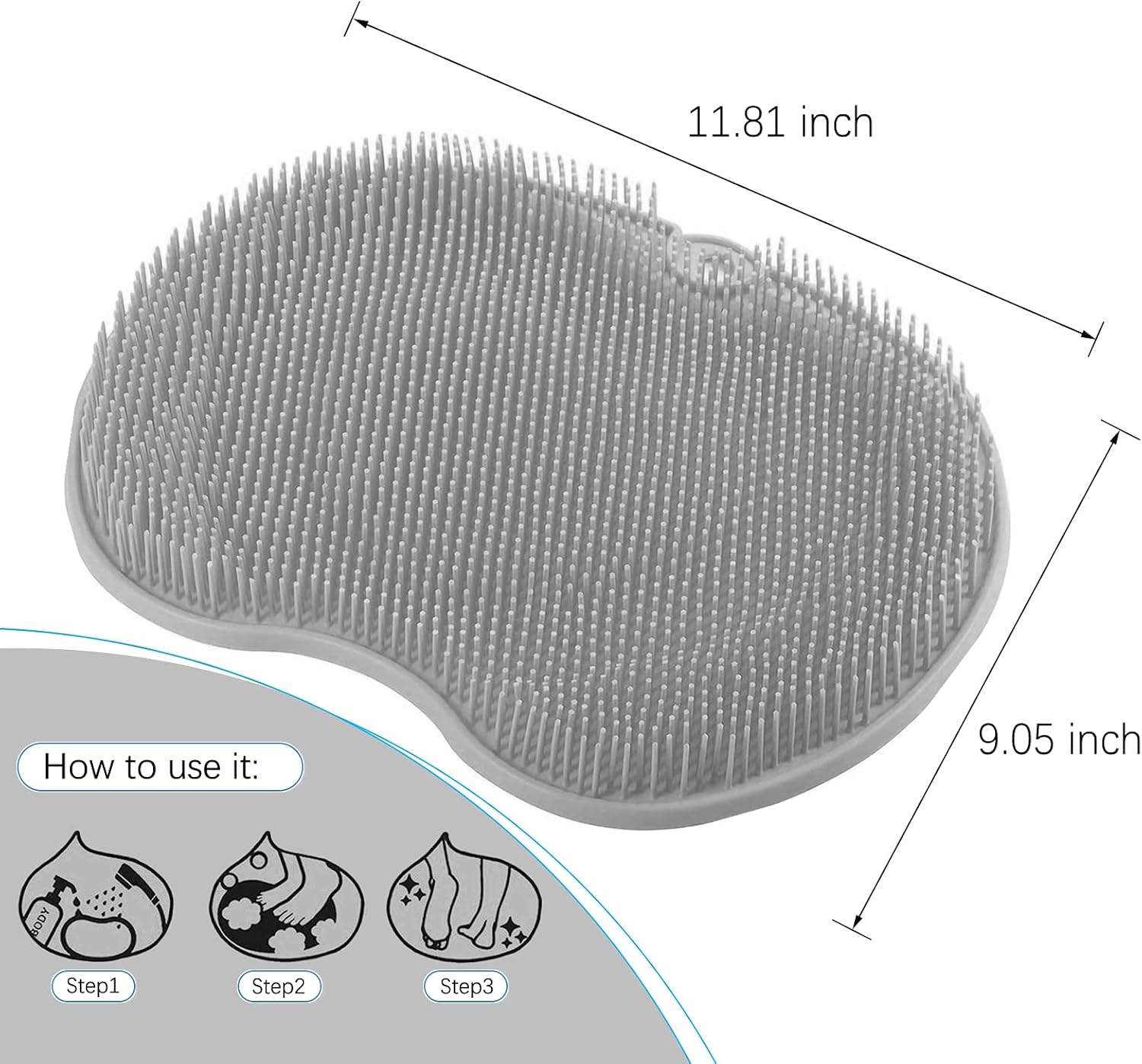 فرشاة سيليكون لتنظيف وتدليك القدمين والظهر مع قاعدة شفط مضادة للانزلاق – رمادي