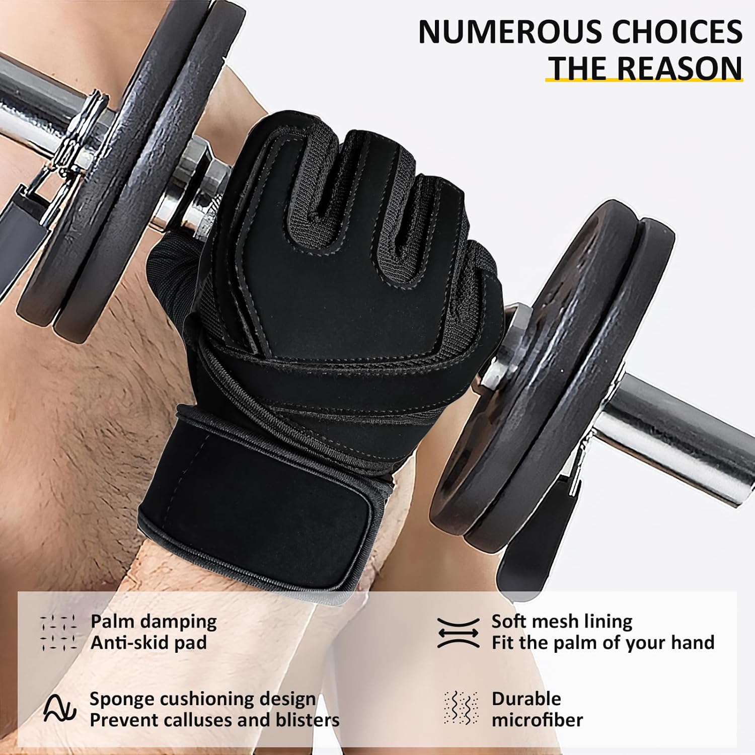 قفازات رياضية بوسادات حماية ودعم معصم - لرفع الأثقال واللياقة
