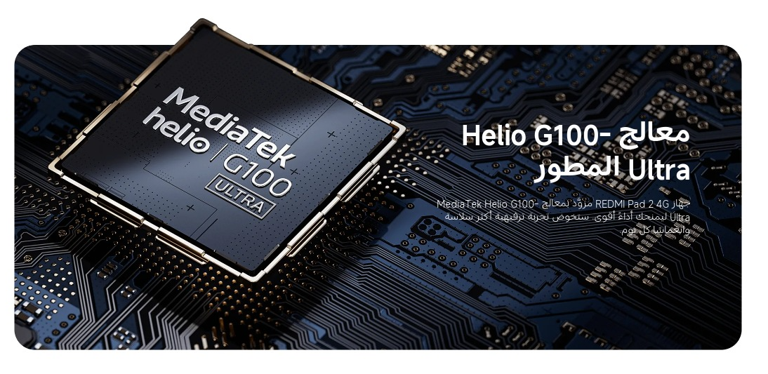 المعالج: يعمل بمعالج MediaTek Helio G100 Ultra ثماني النواة بتقنية 6 نانومتر، مع نوى أداء بتردد يصل إلى 2.2 جيجاهرتز، وهو معالج مصمم خصيصاً لتقديم أداء ممتاز في الألعاب والتطبيقات اليومية مع استهلاك متوازن للطاقة .