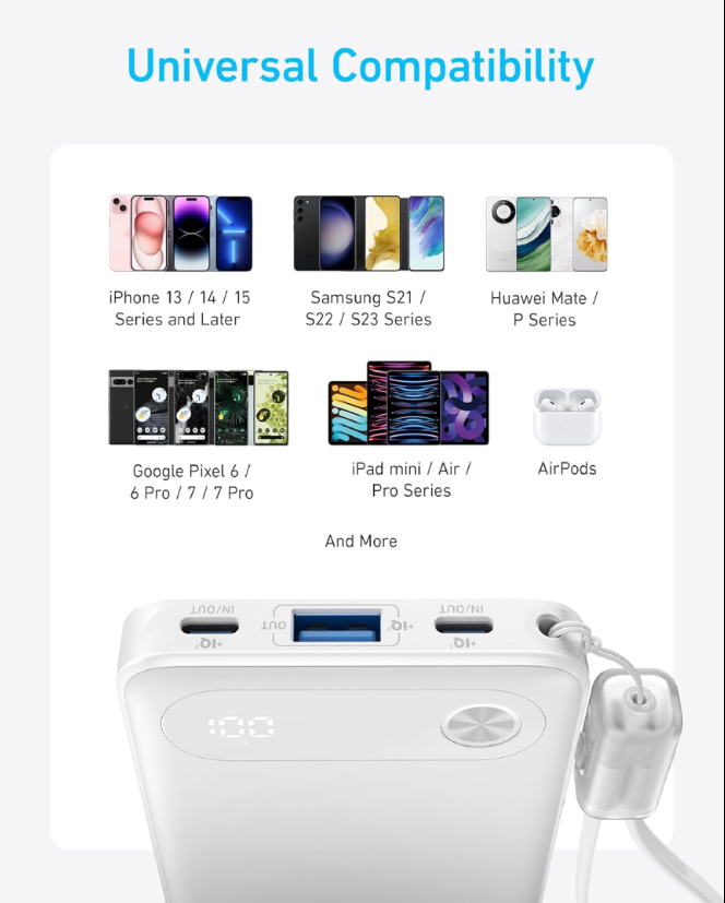 Anker 10000mAh 22.5W Power Bank with USB-C Cable