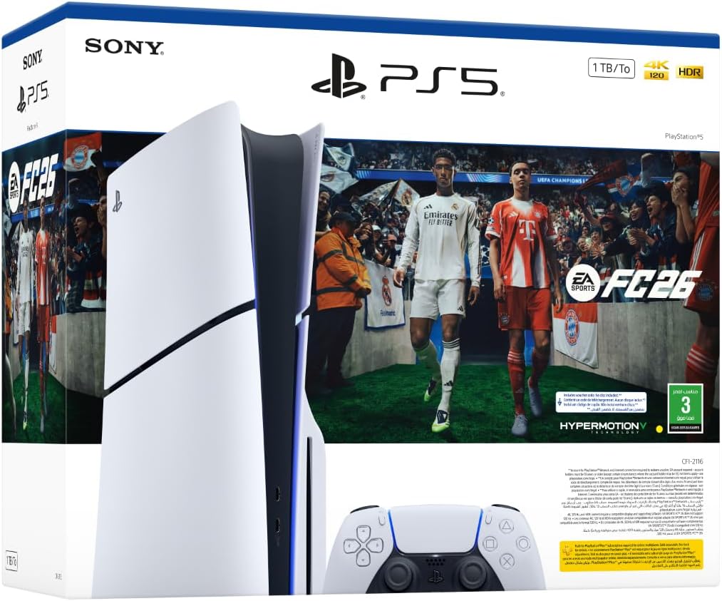 سوني بلايستيشن 5 جهاز تشغيل أقراص بلو راي (نسخة السعودية) مع ذراع تحكم و مجموعة لعبة فيديو FC26