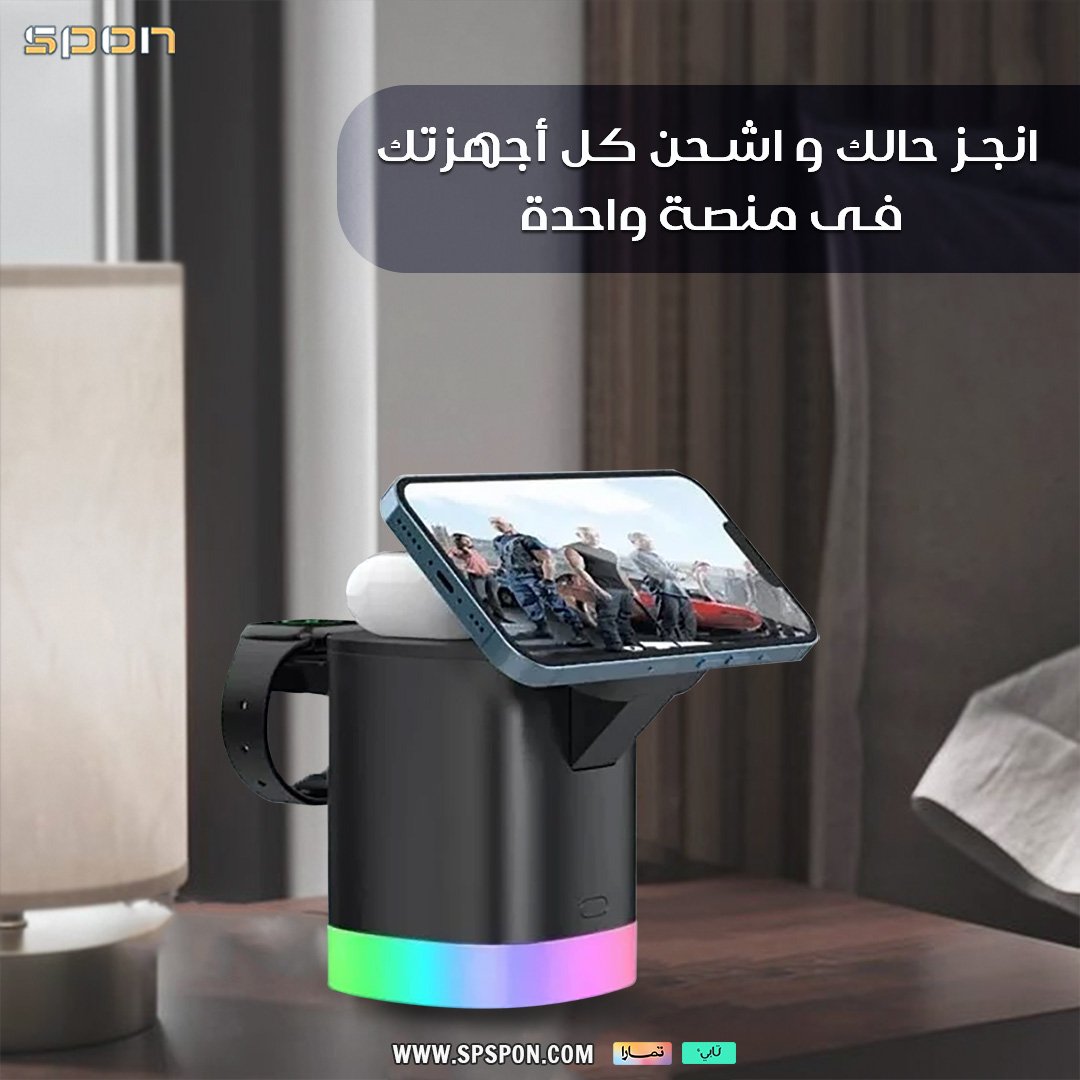 - قاعدة شحن لاسلكية مغناطيسية 4 في 1