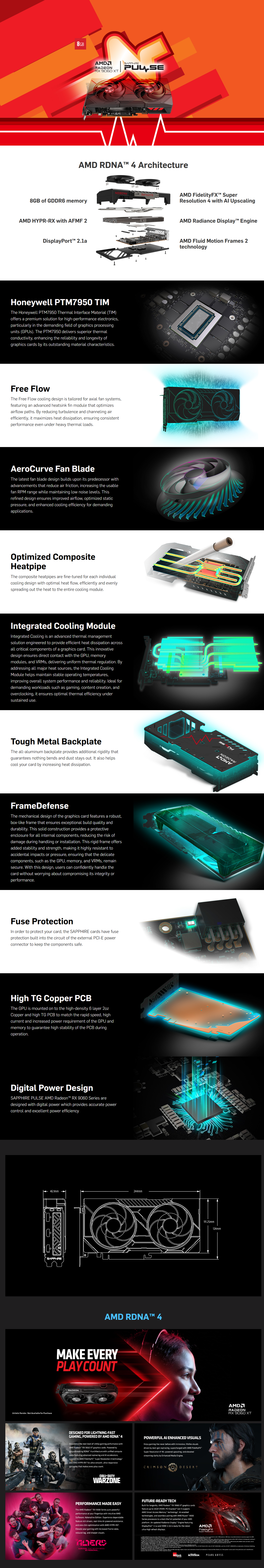 Sapphite Radeon RX 9060 XT 8GB Pulse | كرت شاشة اي ام دي