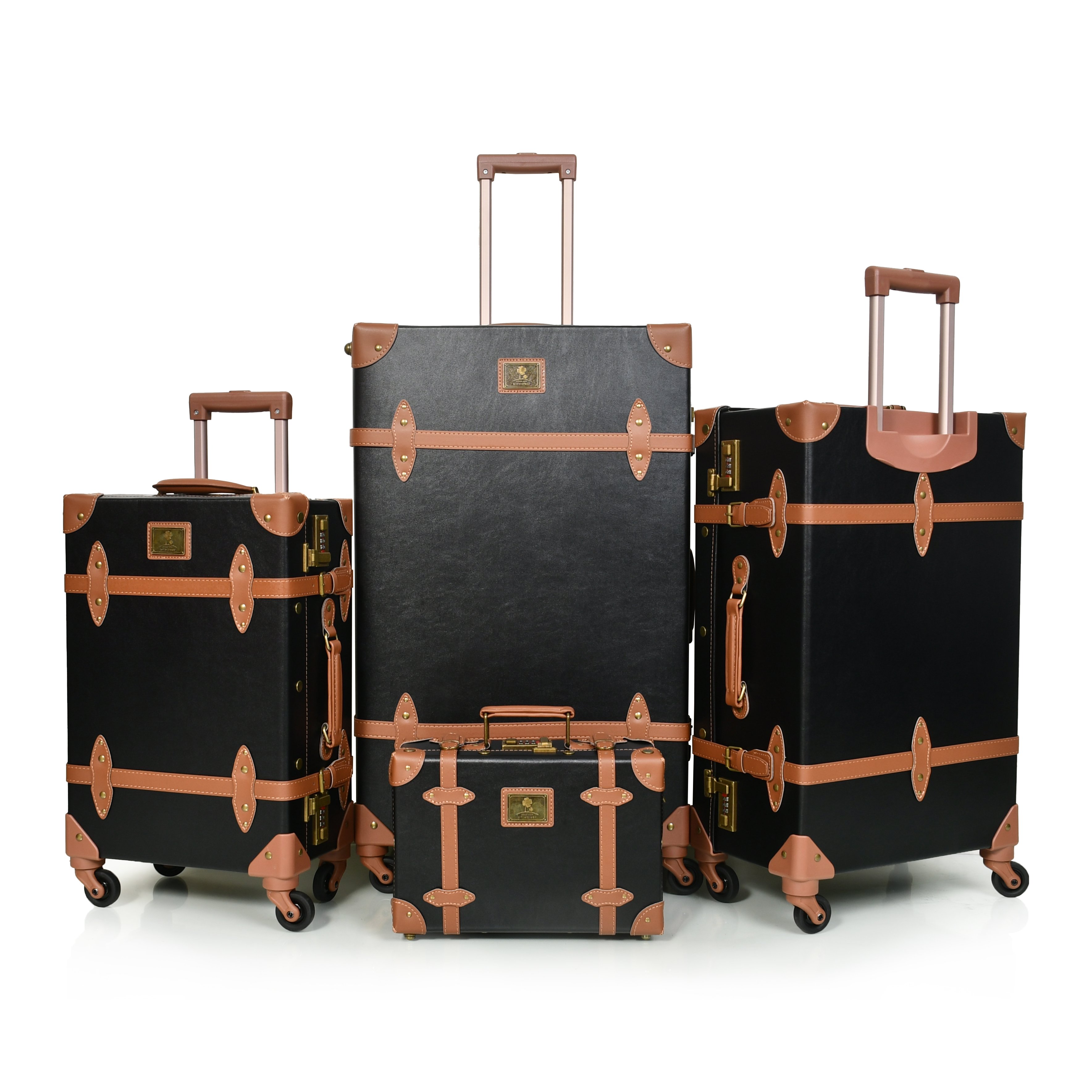 - مورانو طقم شنط سفر كلاسيك جلد اربع قطع أسود