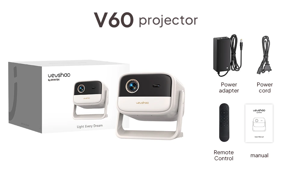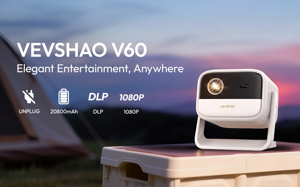 جهاز عرض VEVSHAO V60 محمول بدقة 4K وFull HD 1080P مع واي فاي 6 وبلوتوث 5.2 ونظام أندرويد 11 وتصحيح تلقائي للانحراف للمسرح المنزلي
