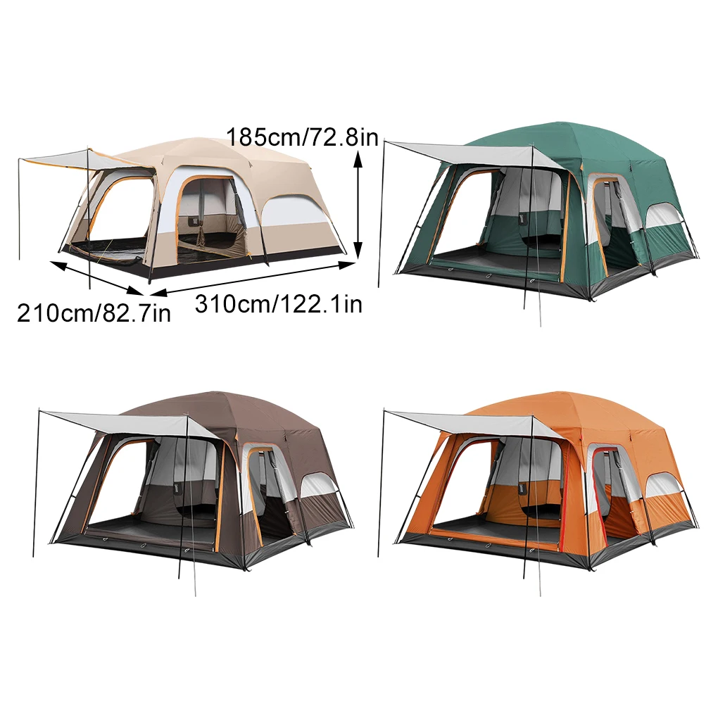 3-12 شخص طبقات مزدوجة كبيرة الحجم في الهواء الطلق التخييم خيمة عائلية 2 غرف سميكة غير نافذ للمطر في الهواء الطلق معدات جولة مخيم الأسرة