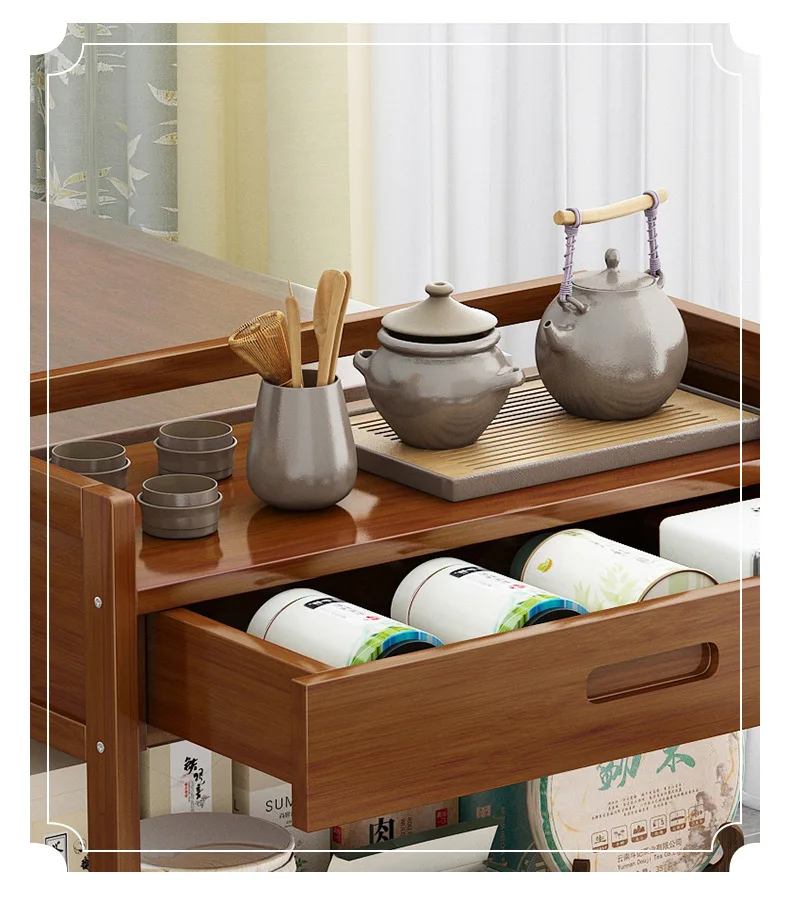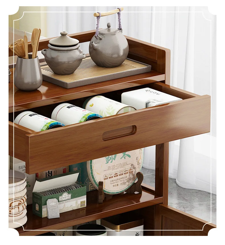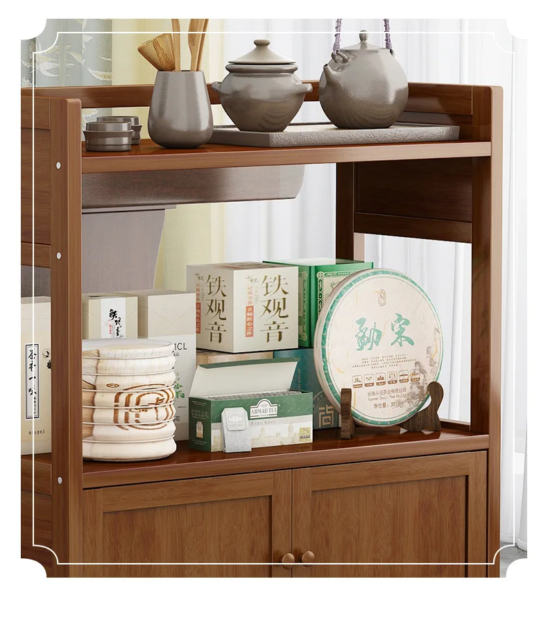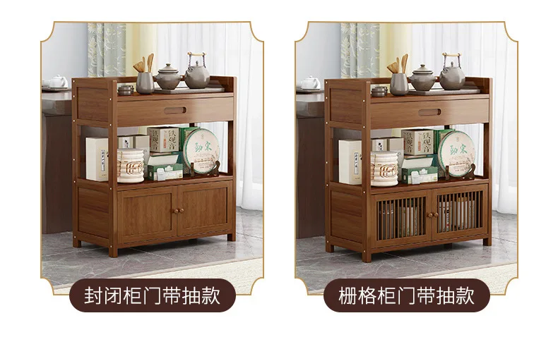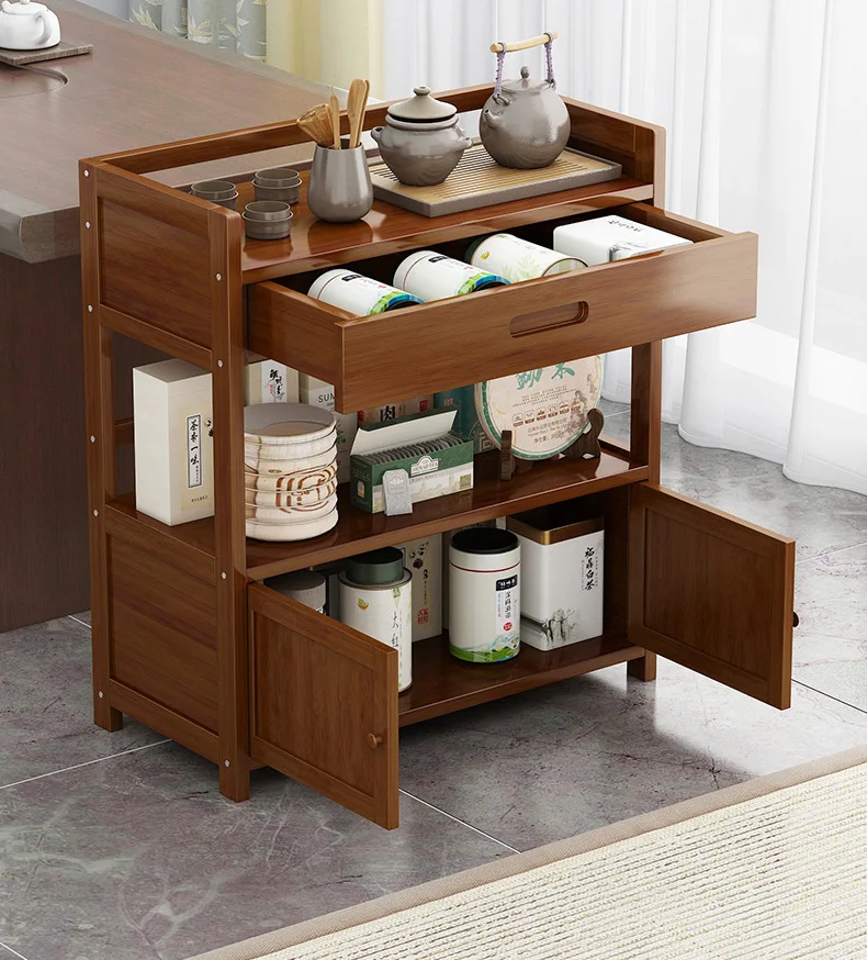 طاولة شاي من الخيزران، خزانة شاي منزلية متعددة الوظائف لغرفة المعيشة، طقم شاي مكتبي، خزانة تخزين للمطاعم والمطبخ