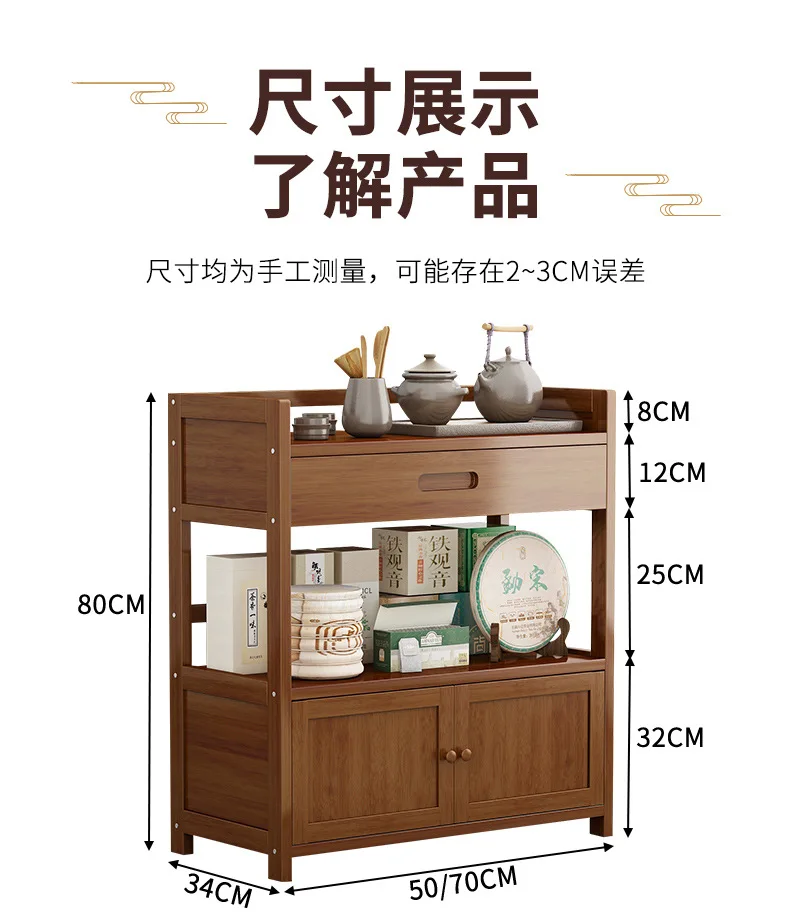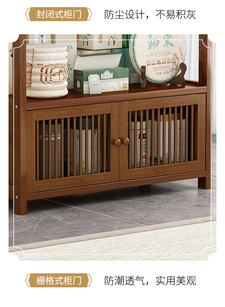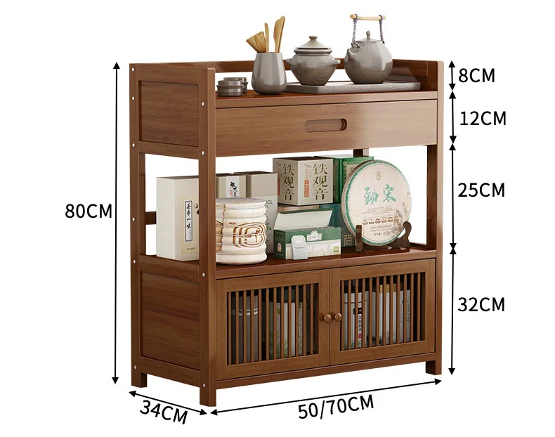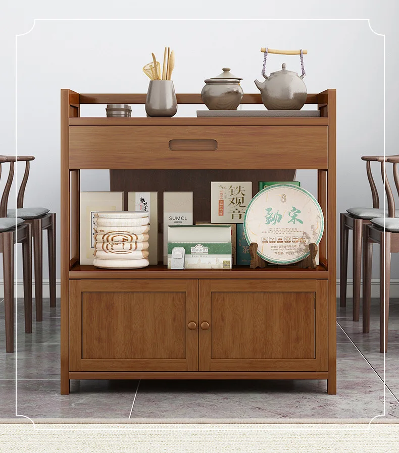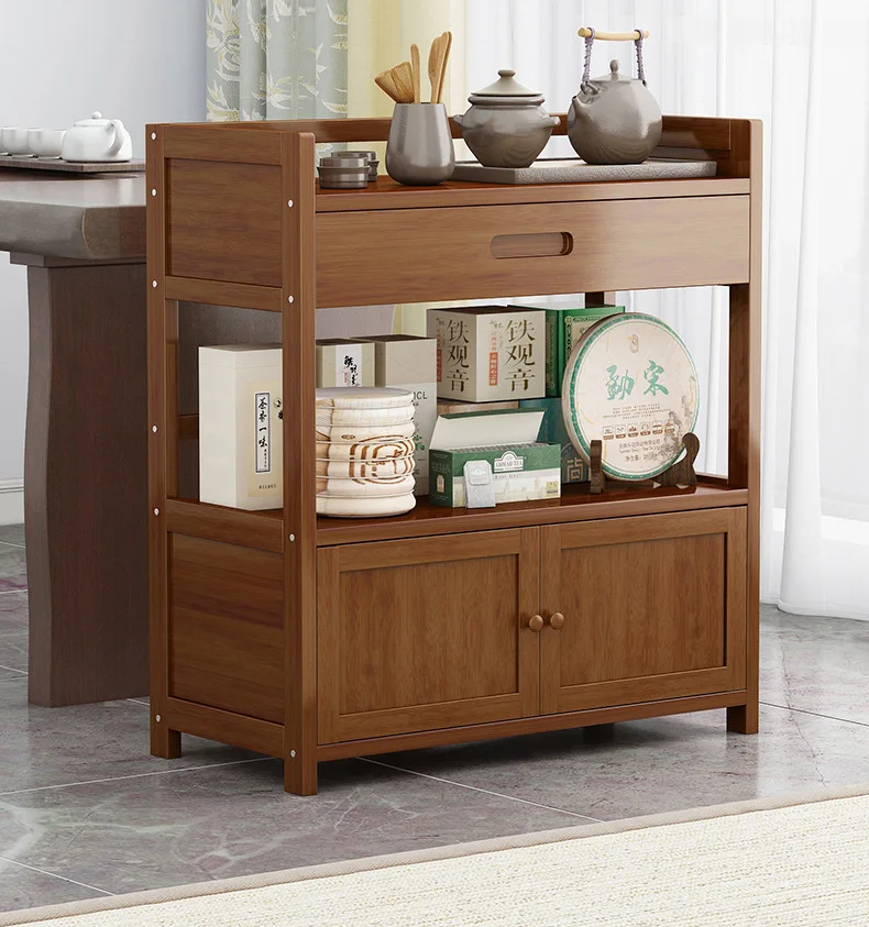 طاولة شاي من الخيزران، خزانة شاي منزلية متعددة الوظائف لغرفة المعيشة، طقم شاي مكتبي، خزانة تخزين للمطاعم والمطبخ