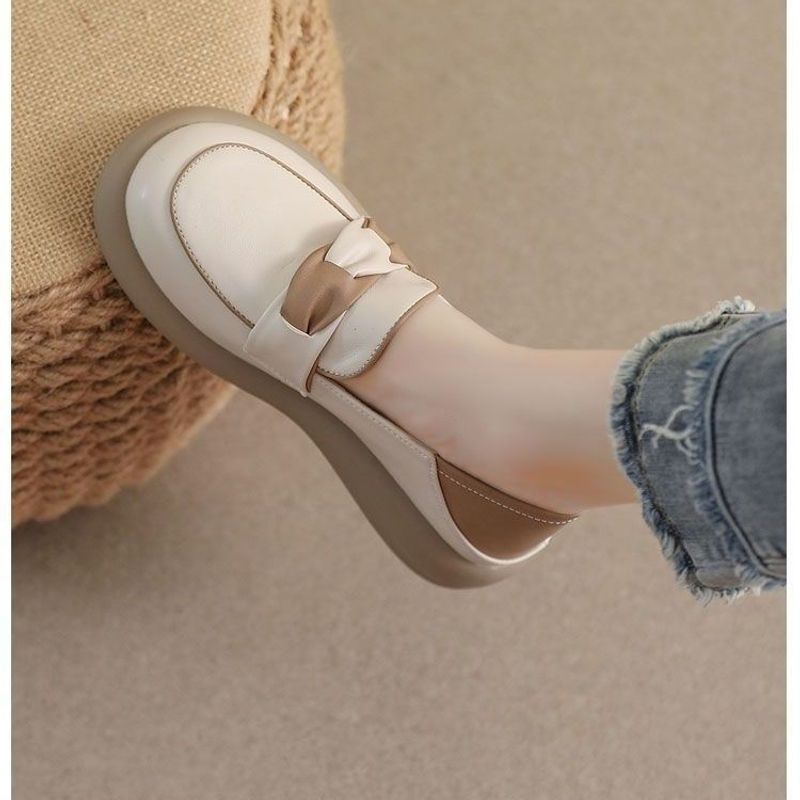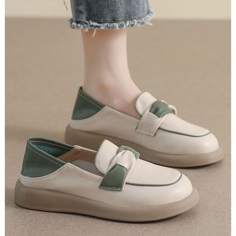 العربية: خصم على حذاء سPortable فو للنساء 2024 جديد ربيع وخريف كعب سميك صغير من الجلد المسطح لحذاء الحوامل الوحيد