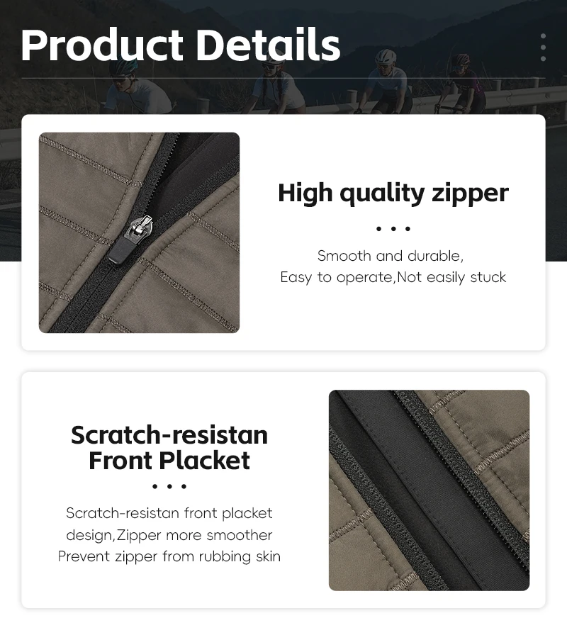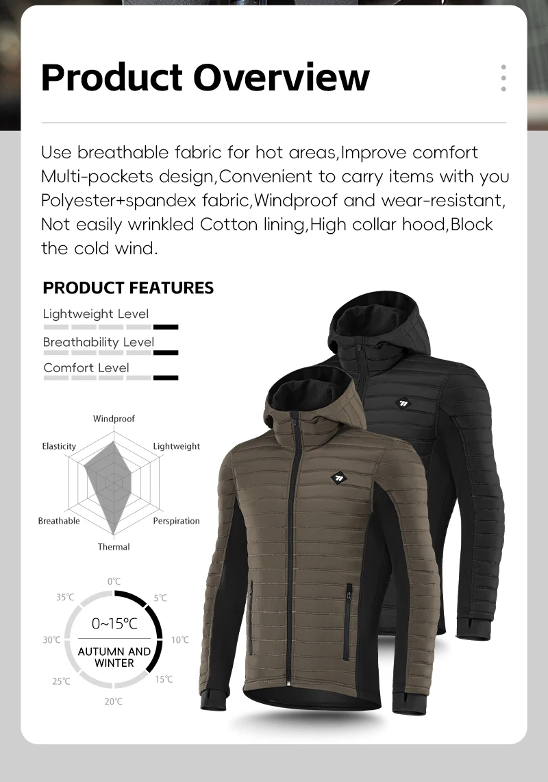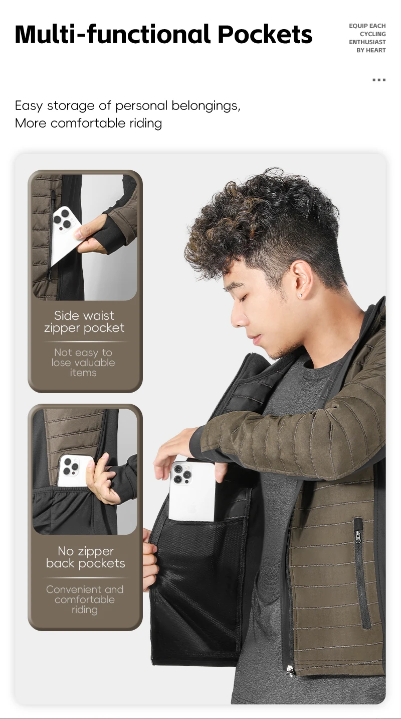 استخدم نسيجًا مساميًا للمناطق الساخنة، وتحسين الراحة، تصميم متعدد الجيوب، مريح لحمل الأشياء معك، نسيج بوليستر + سباندكس، مقاوم للرياح ومقاوم للاهتراء، بطانة قطنية غير مجعدة بسهولة، غطاء رأس ذو ياقة عالية، يحجب الرياح الباردة.