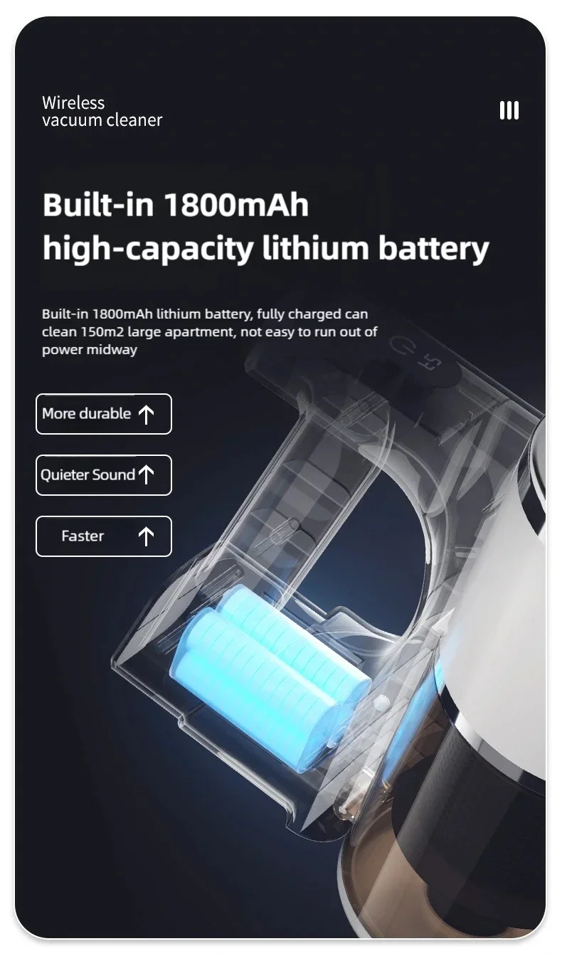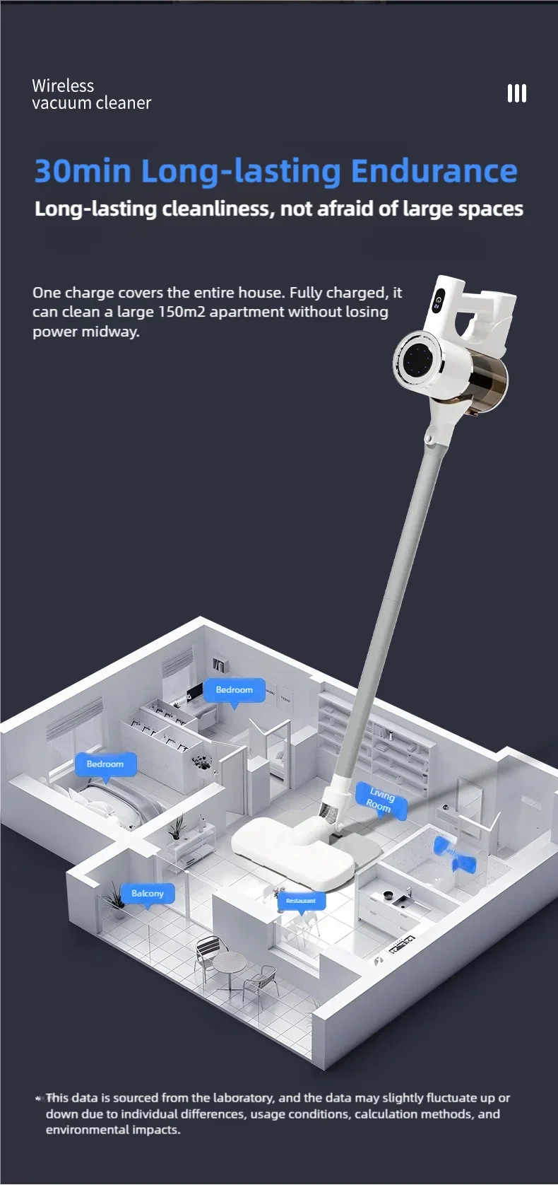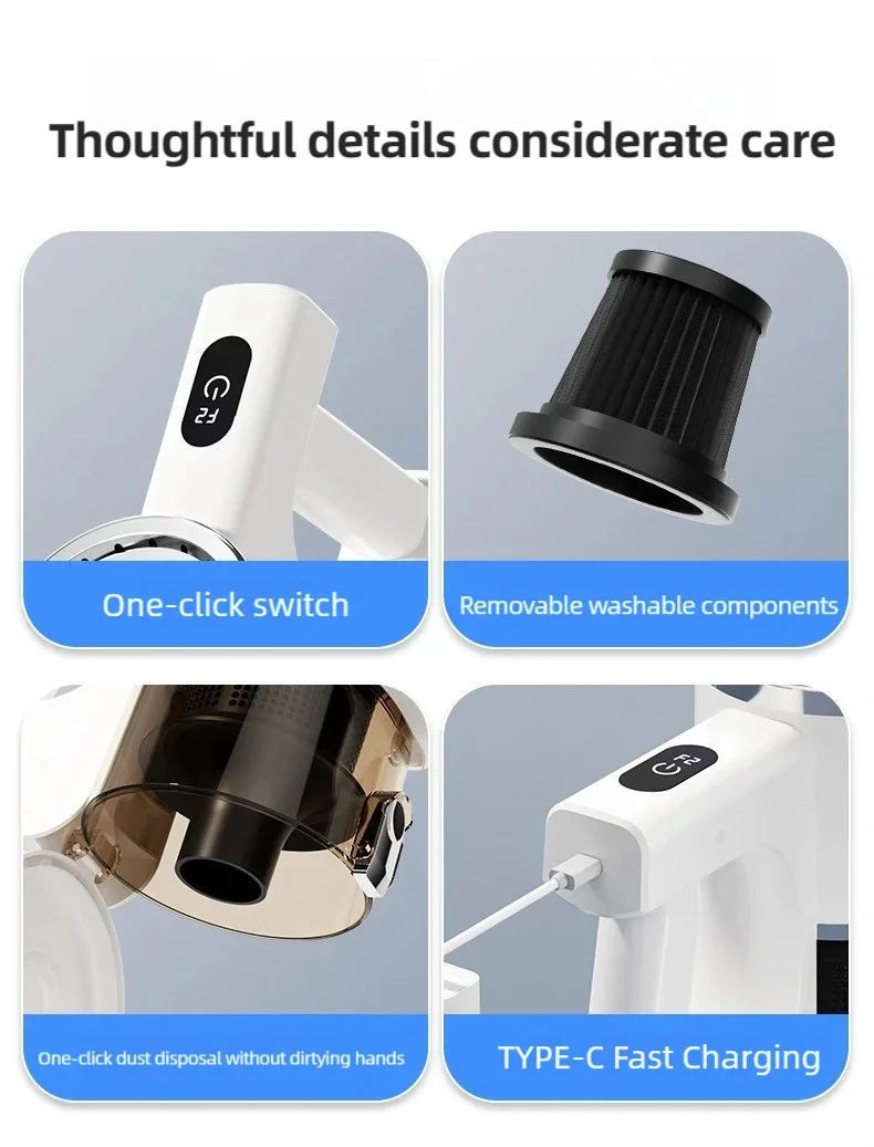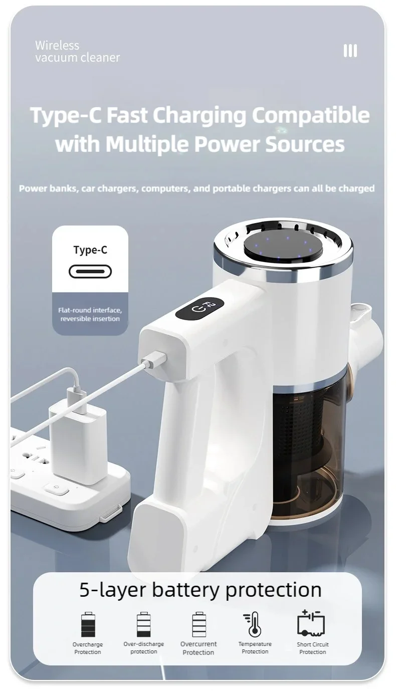 TINSOL 15000PA مكنسة كهربائية لاسلكية مكنسة لاسلكية محمولة 900 مللي كوب غبار مكنسة قابلة للفصل للأرضيات الصلبة/السجاد/شعر الحيوانات الأليفة