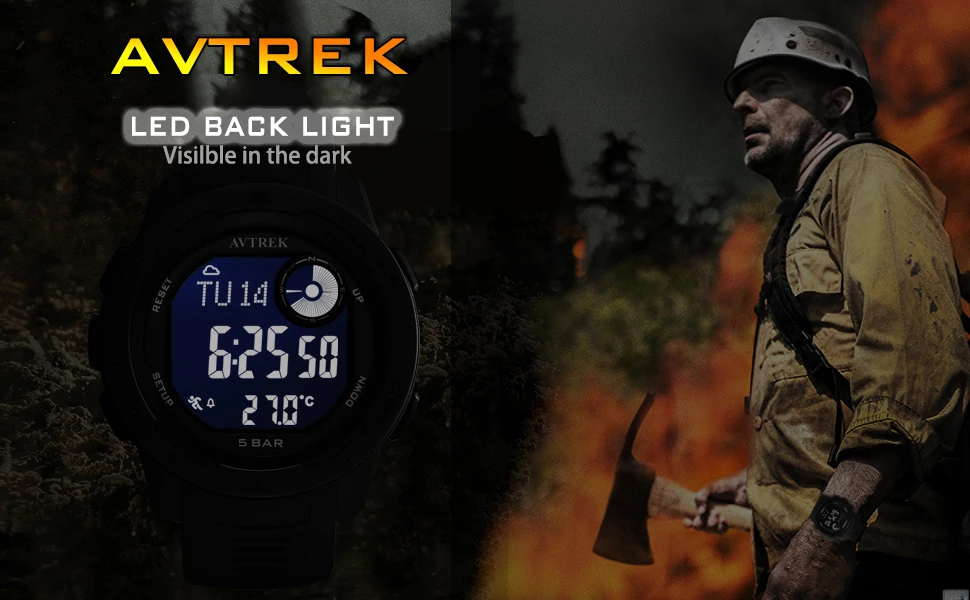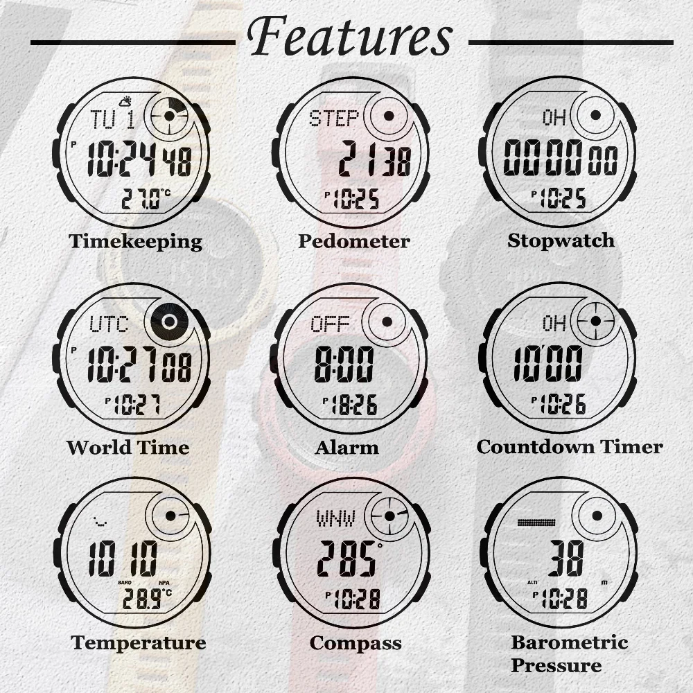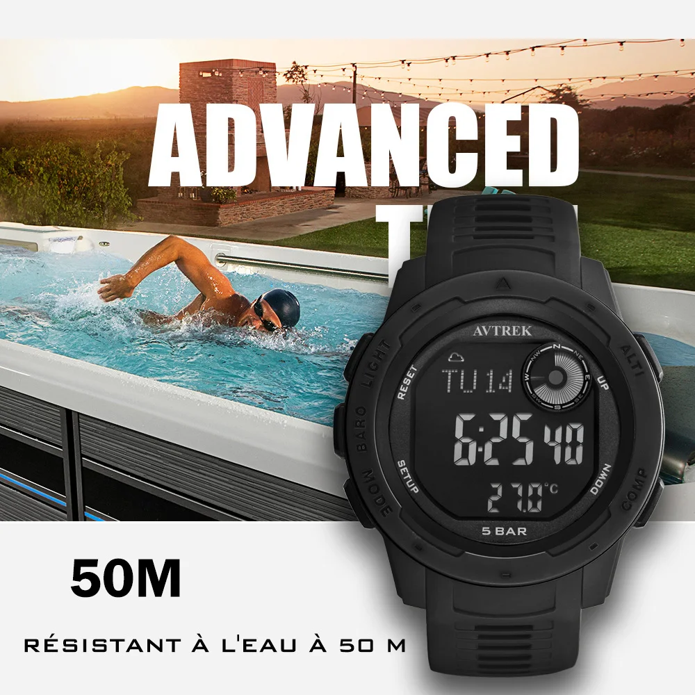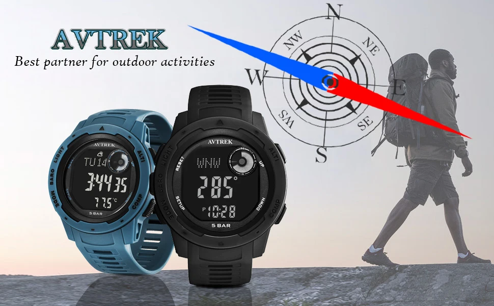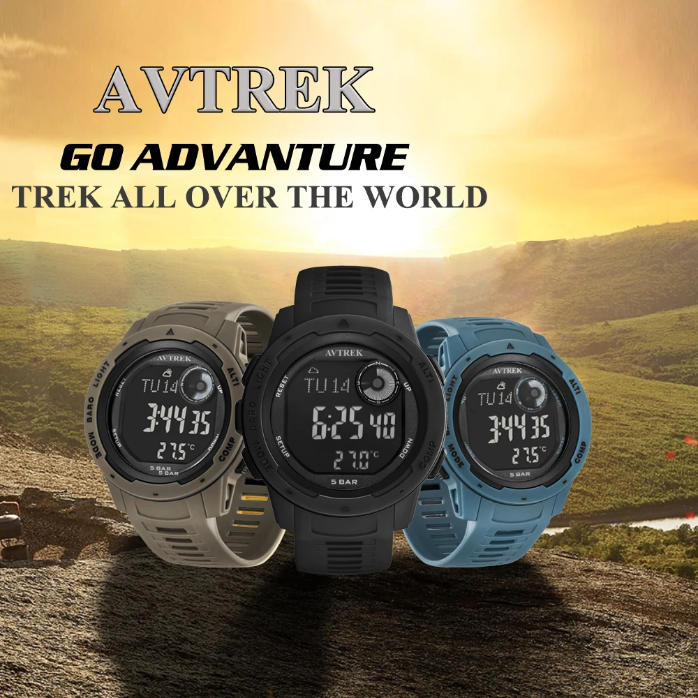 Avtrek ساعة رياضية رقمية للرجال في الهواء الطلق عداد الخطى ساعة معصم إلكترونية للرجال مع بوصلة مقاومة للماء للمشي لمسافات طويلة والتسلق الساعات السياحية