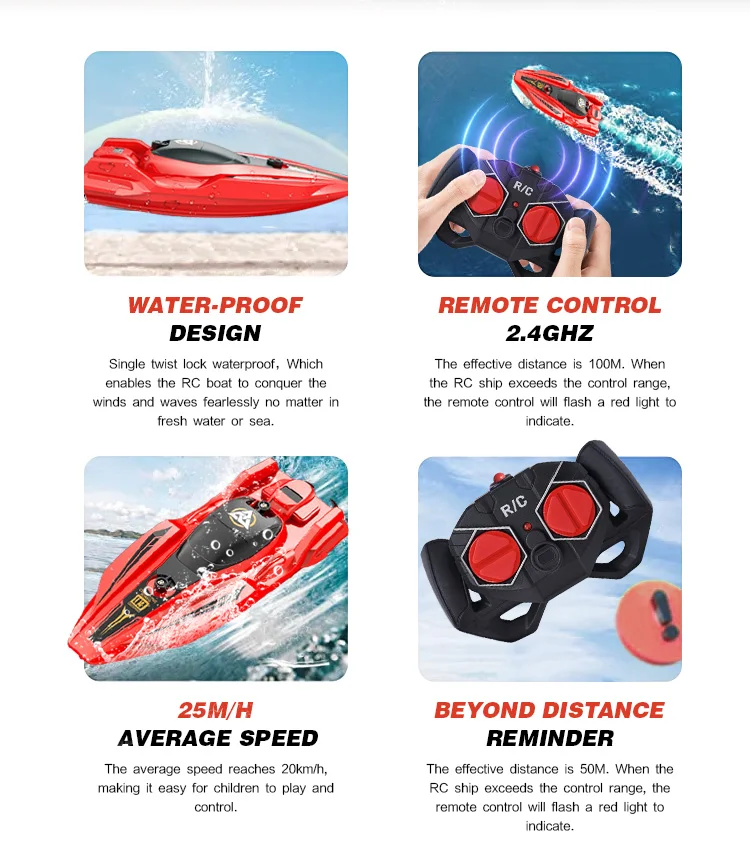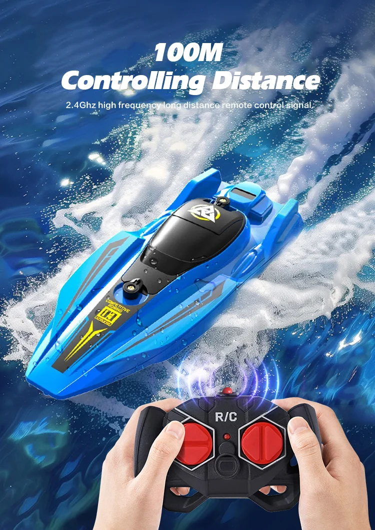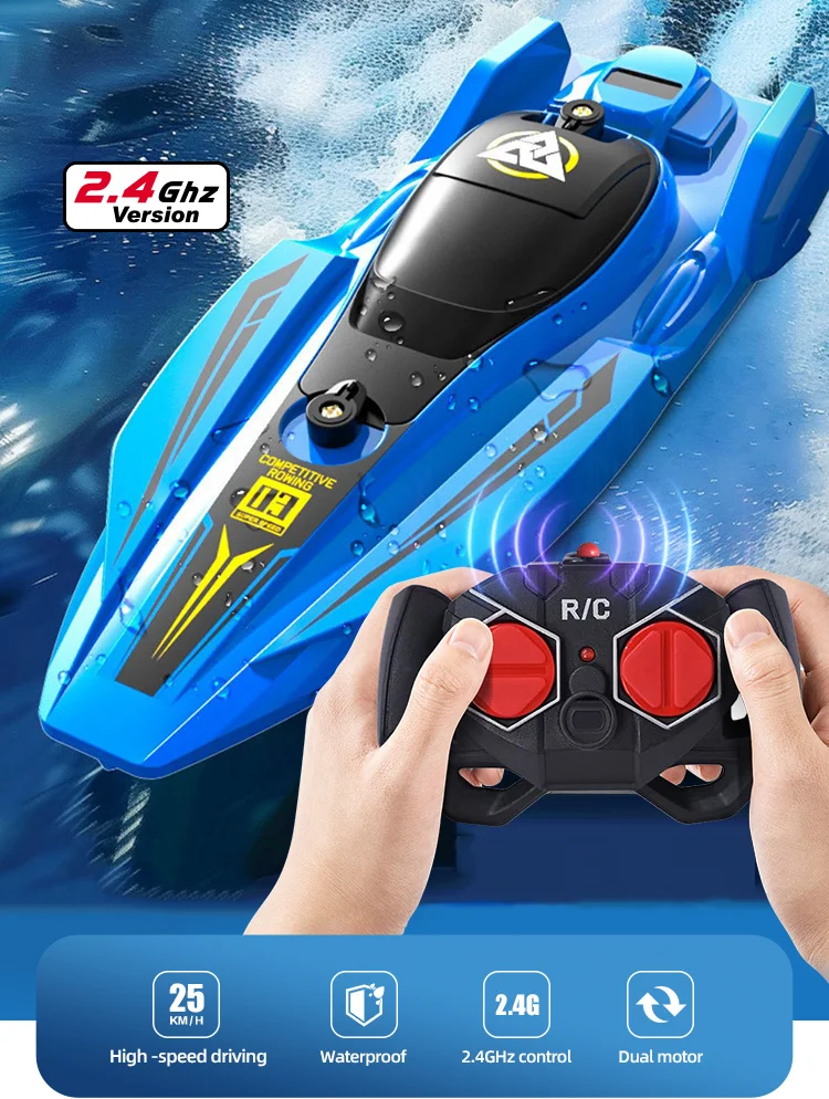 قارب التحكم عن بعد للأطفال والكبار، لعبة RC عالية السرعة 25 كم/ساعة مع مراوح مزدوجة، محرك مزدوج، مقاومة للماء لحمام السباحة/البحيرة
