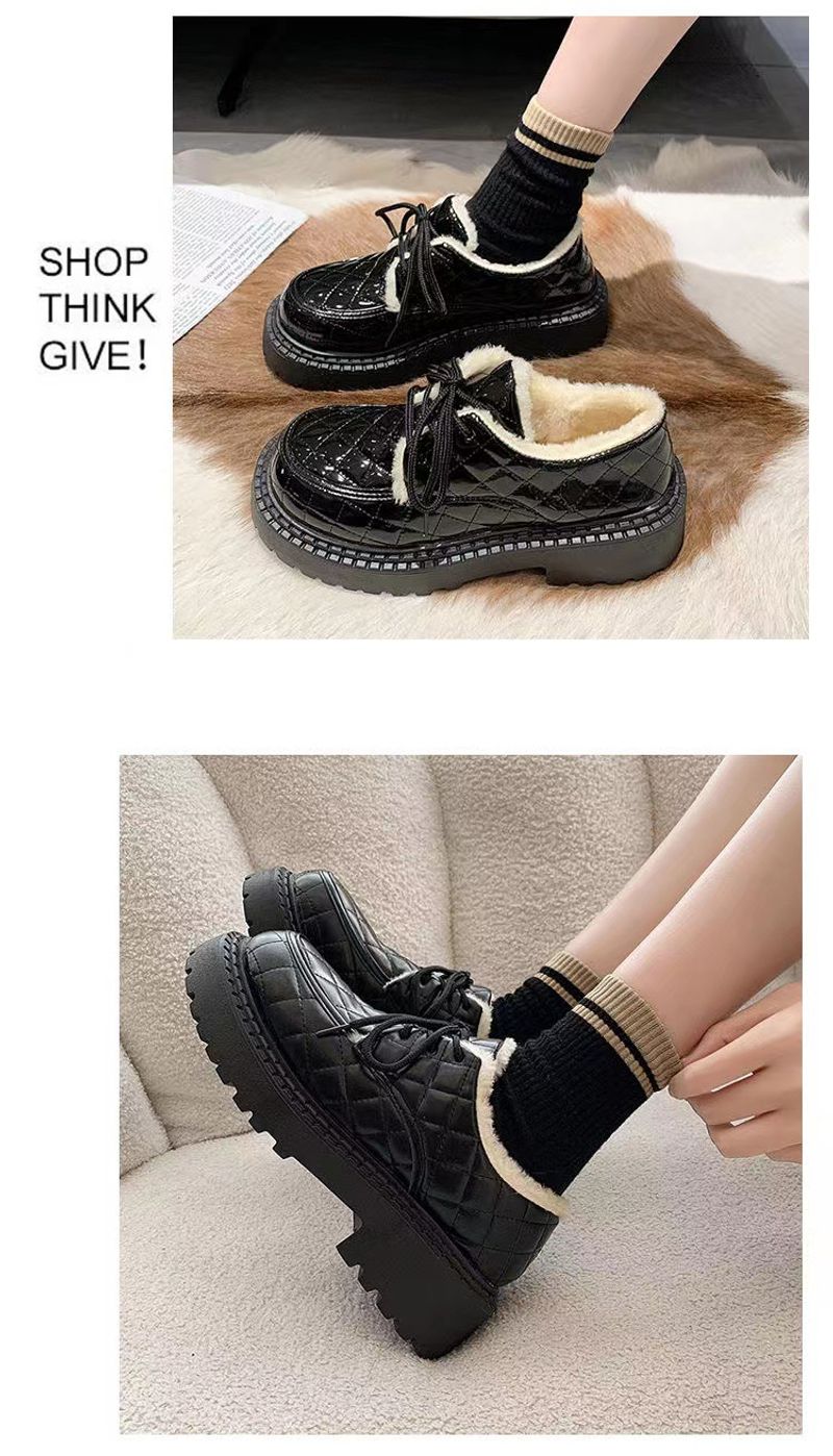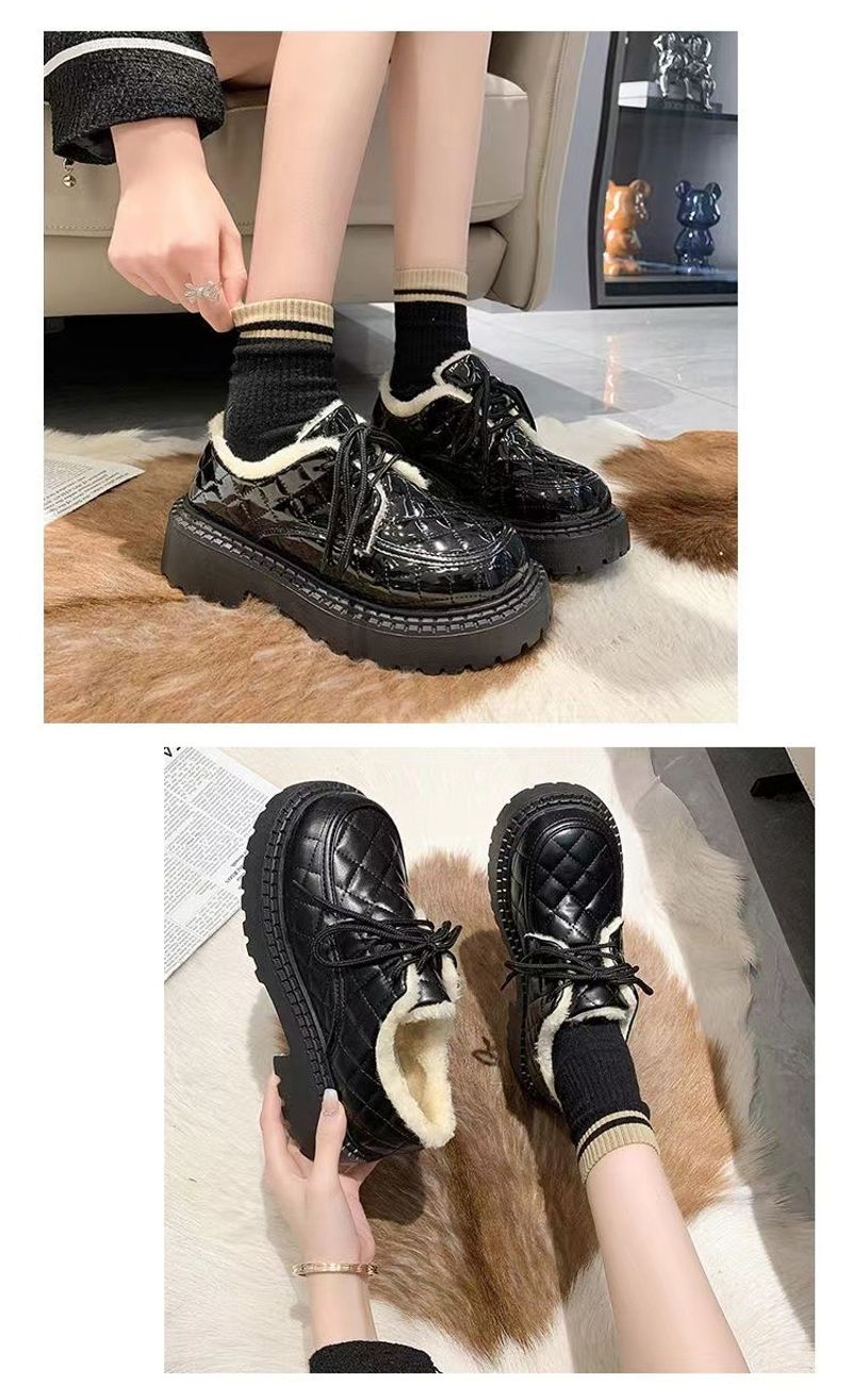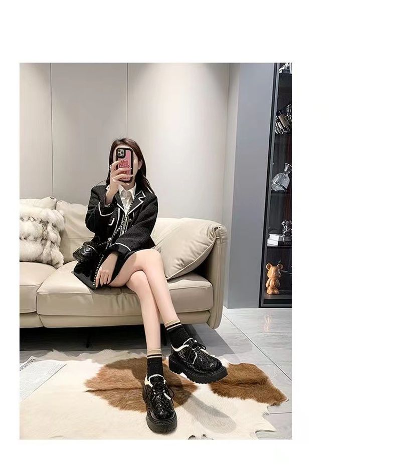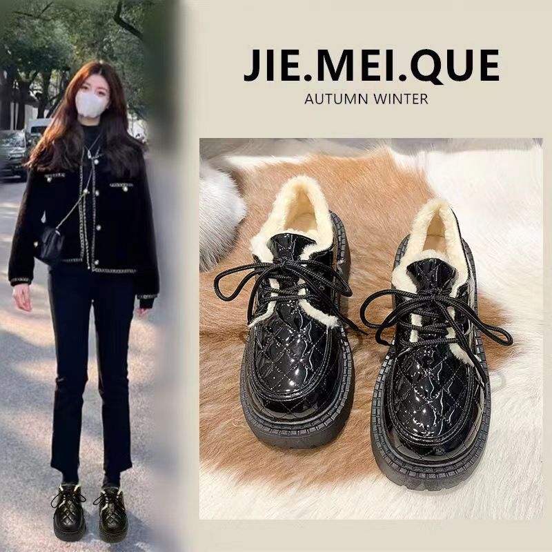 نسخة كورية من ليفو للنساء في الشتاء 2024، حذاء جديد برباط بتصميم بريطاني سميك مع فراء وقطن