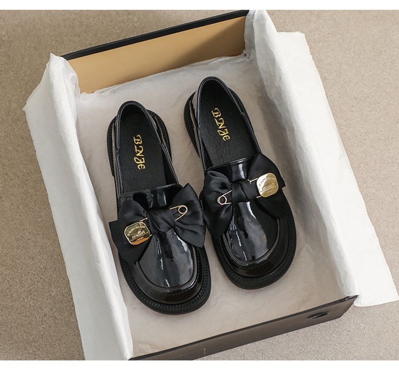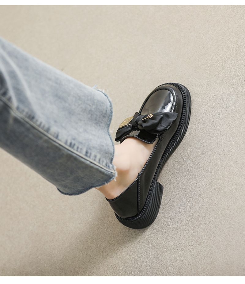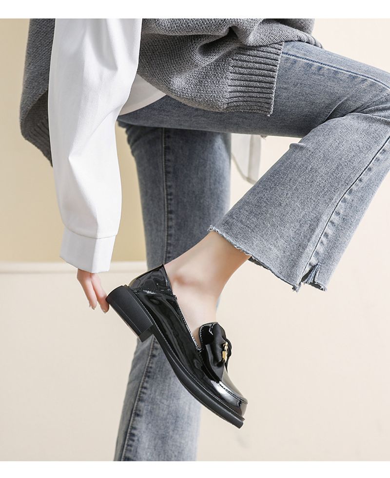 عازمة الربيع والخريف بأسلوب بريطاني كلاسيكي، حذاء من الجلد الأسود بنقوش ورود، يسهل ارتداؤه وله طراز واحد بنعل ناعم.