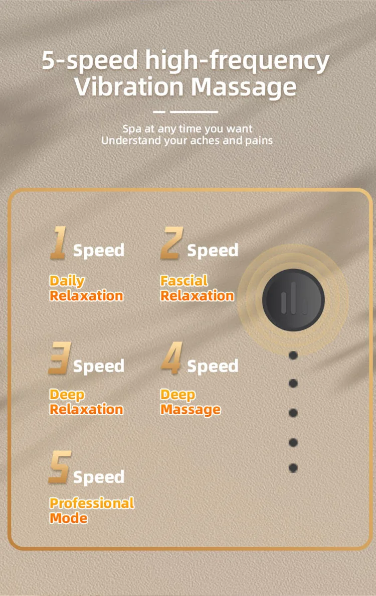 خفيفة الوزن للغاية.بفضل المقبض النحيف وسهل الإمساك والتصميم خفيف الوزن، يمكنك الاستمتاع بأفضل تجربة تدليك في المنزل أو صالة الألعاب الرياضية أو في المكتب.يُعد مسدس التدليك الكهربائي المتميز هذا مثاليًا للرياضيين المحترفين وعشاق اللياقة البدنية وكبار السن وربات البيوت والمزيد
